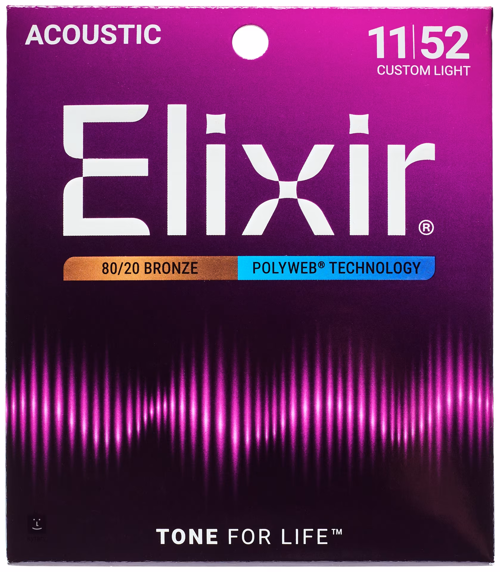 Struny Elixir słyną z wyjątkowo długiej żywotności, z którą bardzo trudno konkurować. Dzięki specjalnej powłoce są odporne na korozję, wilgoć, zanieczyszczenia i pot, dzięki czemu przez długi czas zachowują czyste i przebijające brzmienie. Pod względem brzmienia są to bardzo mocne i rezonujące struny, które przebiją się na każdej scenie lub nagraniu. Struny oznaczone jako 80/20 Bronze mają owijkę wykonaną ze stopu brązu (80/20), co nadaje im przenikliwy i dzwoniący charakter. Zestaw ten jest jednak pokryty warstwą ochronną Polyweb, która lekko tłumi ich dzwonkość, dzięki czemu uzyskuje się bardziej stonowane i ciepłe brzmienie.