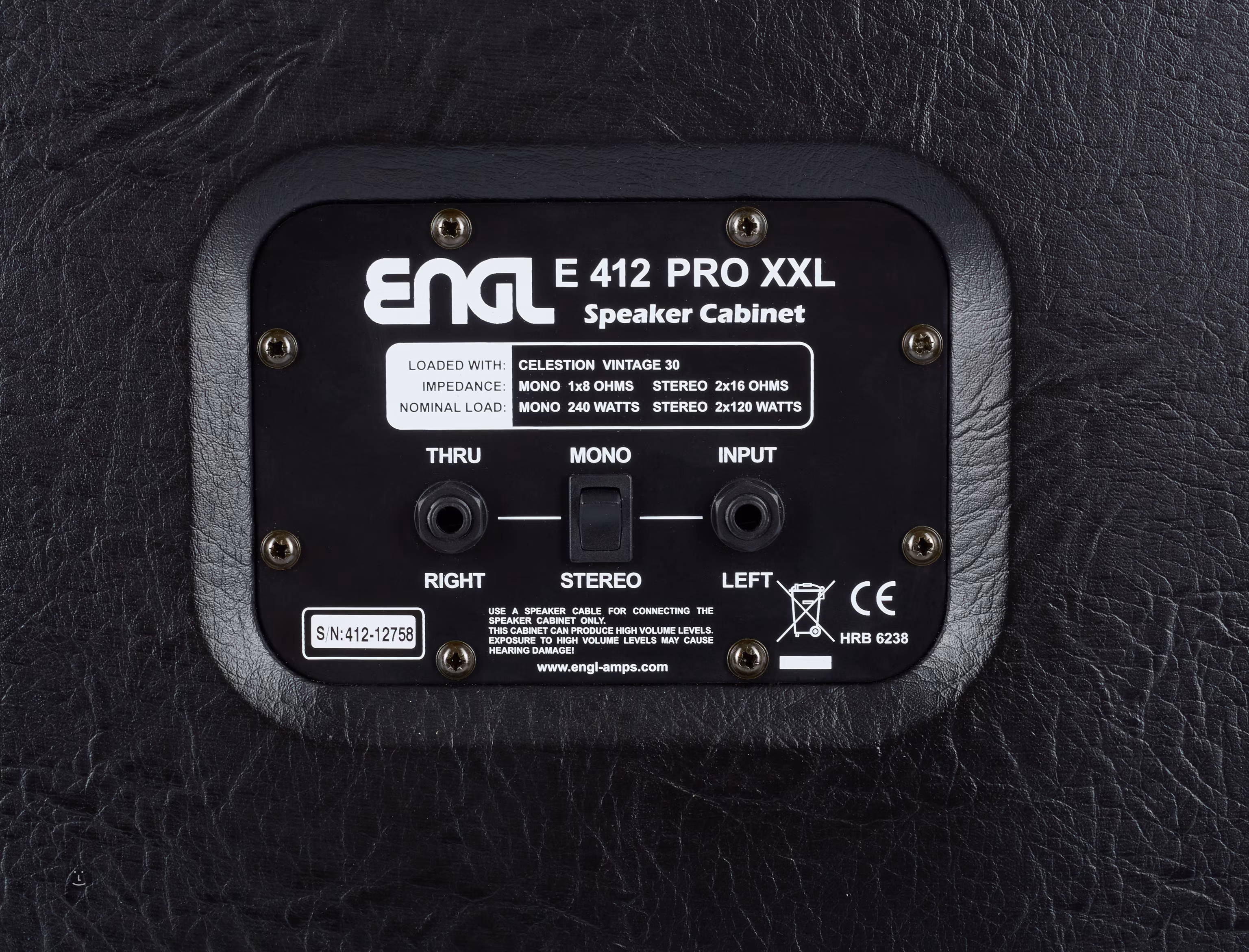 Ten głośnik jest nieco nietypowym przedstawicielem skrzynek 4x12 PRO - ma powiększoną obudowę, dzięki czemu ma jeszcze mocniejszy bas i mocniejsze średnie tony. Wyposażona jest w cztery 12-calowe głośniki Celestion Vintage 30, dzięki czemu jest w stanie dostarczyć do 240W w mono i 2x 120W w stereo. Impedancja tego modelu wynosi 8 Ohm lub 2x 16 Ohm. Jego obudowa jest bardzo wytrzymała, narożniki są siatkowe, na górze znajduje się solidny uchwyt, a głośnik jest chroniony metalową kratką, wszystko jest skonstruowane tak, aby ta skrzynia wytrzymała wszystko, co może napotkać podczas użytkowania. Jest to prosta wersja obudowy, ale płyta rezonansowa jest ścięta.
