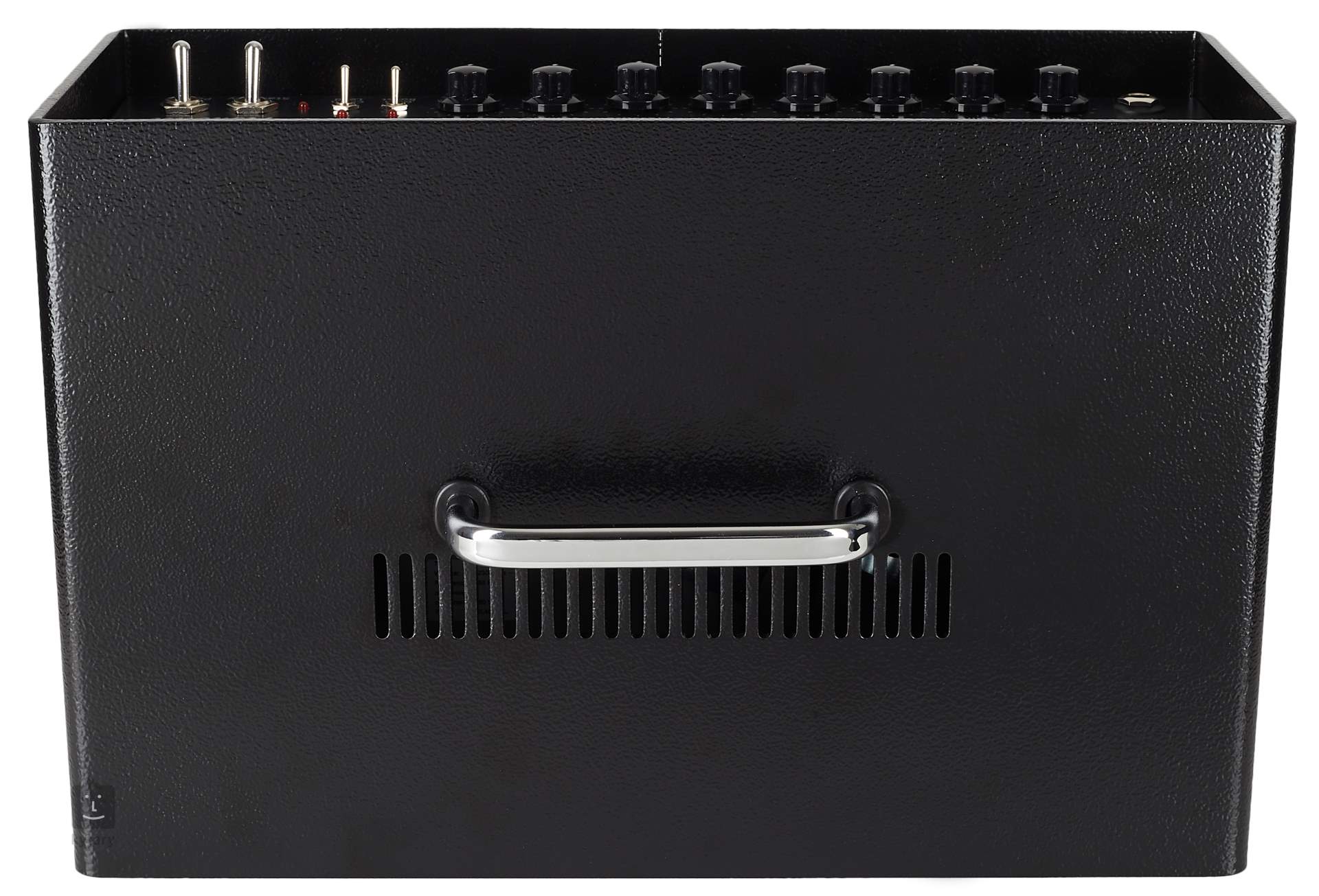 Jeśli spojrzysz na przedni panel, za wejściem gitarowym znajdują się osobne regulatory wzmocnienia dla każdego kanału, wspólny 3-pasmowy korektor uzupełniony regulatorem Presence, Volume dla drugiego kanału i Master Volume. Za nimi znajduje się tylko przełącznik Gain Boost, przełącznik kanałów i obowiązkowa para przełączników Stand By i Power. Panel tylny oferuje trzy wyjścia do podłączenia kolumn głośnikowych, wyjście Line-Out z symulacją głośnika oraz wyjście słuchawkowe. Nie brakuje tu również regulatora wbudowanego pogłosu, wejścia i wyjścia pętli efektów oraz pary wejść dla przełączników nożnych. Znajduje się tu również wspomniany przełącznik mocy.