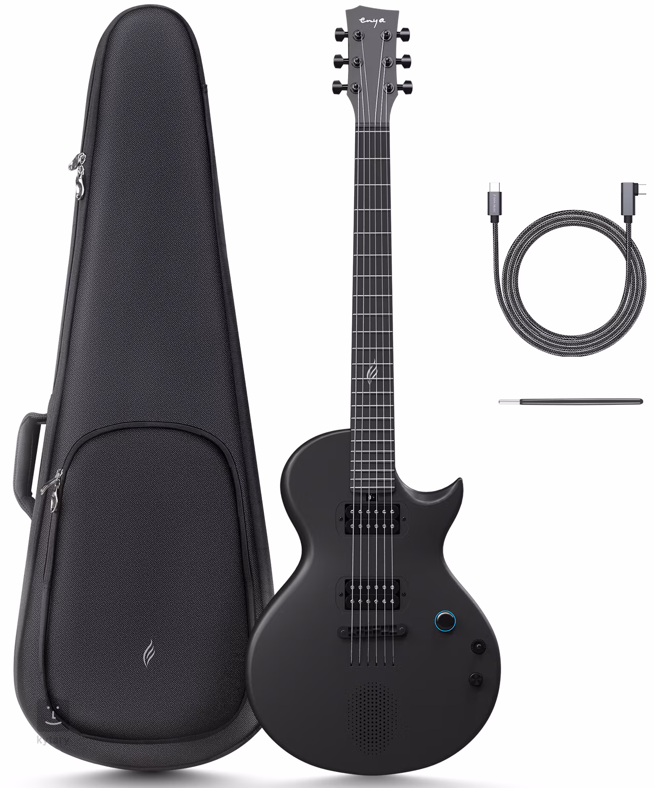 Enya Nova Go Sonic Black to inteligentna gitara elektryczna o konstrukcji typu LP z kompozytu węglowego, wbudowanym 10-watowym głośnikiem z łącznością Bluetooth, cyfrowym systemem ES1 Pro Smart z czterema presetami brzmieniowymi (Clean, OD, Crunch, Lead), wbudowanym ładowaniem baterii i nagrywaniem w ruchu przez USB oraz wyjściem słuchawkowym. Dostępna jest również dogłębna edycja i dostęp do dodatkowych funkcji (takich jak efekty gitarowe) w aplikacji Enya Music. Wreszcie, gitara elektryczna, na której można grać bez podłączenia do prądu niemal wszędzie.