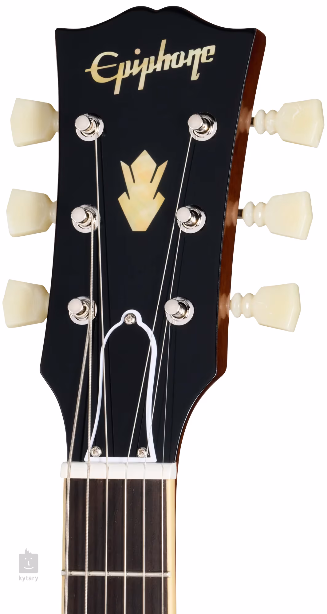 Dwa niewoskowane humbuckery Gibson Custombucker z magnesami Alnico 3, wyprodukowane w USA, zapewniają gitarze ciepłe, autentyczne brzmienie przetworników PAF, które docenisz w jazzie, rocku, bluesie, country i innych stylach muzycznych. Przetworniki są ręcznie przylutowane do potencjometrów głośności i tonu. Struny są zamocowane przez zerowy próg Graphtech w stroikach Epiphone Deluxe i ABR-1 TOM oraz aluminiowym strunociągu. Stylowe wykończenie podkreśla perłowe (mother-of-pearl) logo firmy i intarsja na główce gitary w tradycyjnym stylu „open book”, czarny pięciowarstwowy pickguard w kształcie ES-335 oraz niklowy osprzęt.