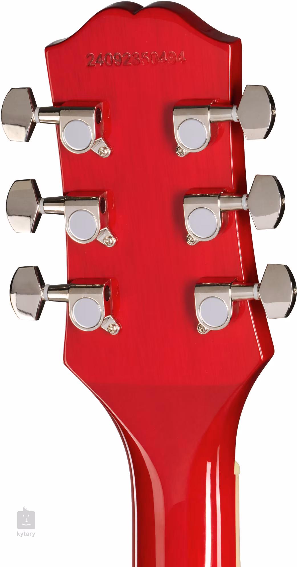 Mahoniowy korpus gitary elektrycznej Les Paul Tribute Plus Heritage Cherry Sunburst zdobi efektowna okleina z klonu płomienistego (flamed maple). Rysunek klonu podkreśla błyszczący lakier i kolorowe wykończenie Heritage Cherry Sunburst. Do mahoniowego gryfu przyklejono podstrunnicę z drzewa figowego z dwudziestoma dwoma progami rozmiaru Medium Jumbo. Orientację na gryfie ułatwiają blokady pozycyjne z imitacji masy perłowej.