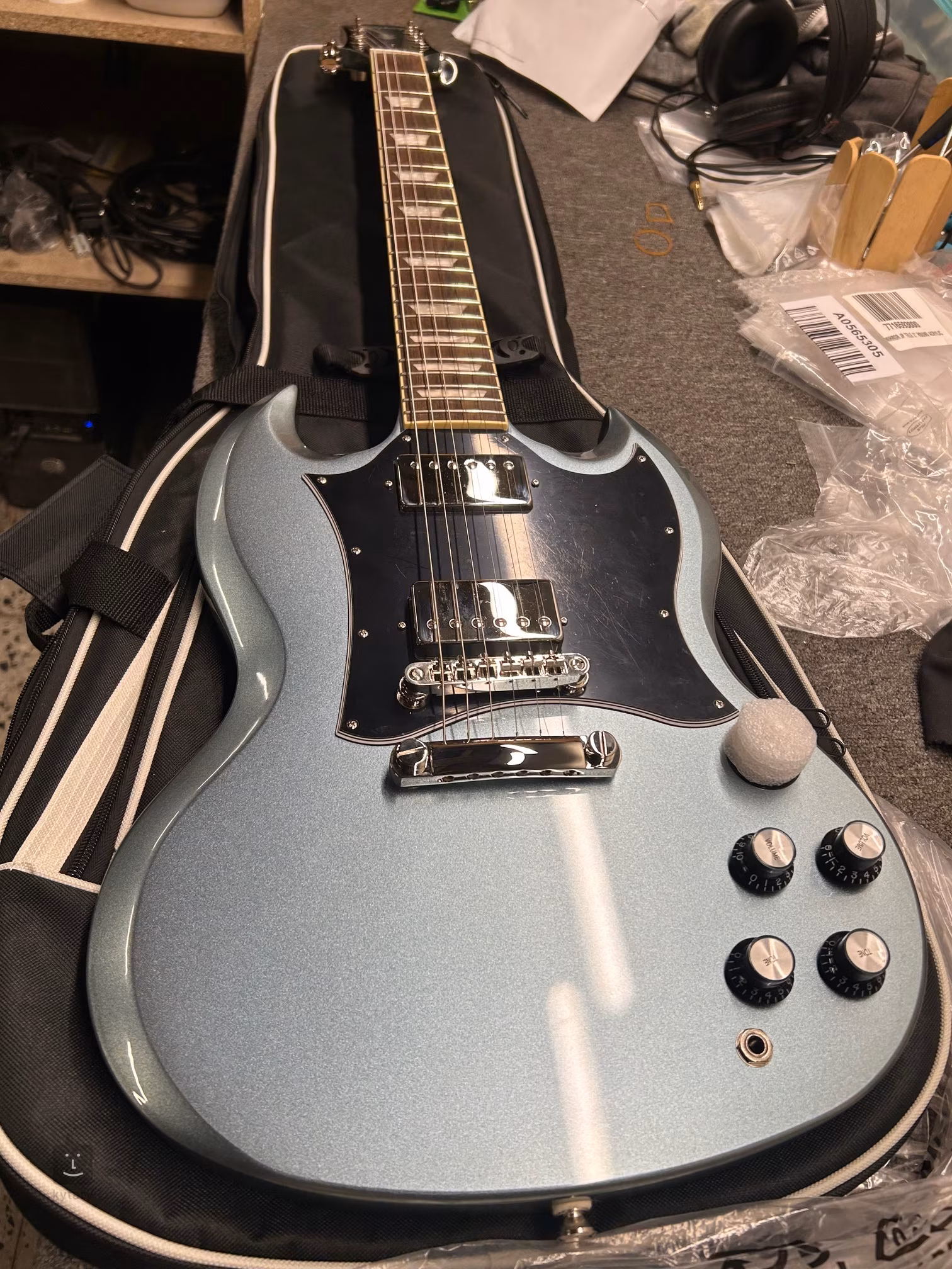 Gitary elektryczne Epiphone stanowią bardziej przystępną cenowo alternatywę dla oryginalnych modeli z logo Gibson. Dotyczy to również serii SG Standard, opartej na projekcie cenionych modeli „esg” z końca lat 60. ubiegłego wieku. Korpus gitary elektrycznej SG Standard Pelham Blue jest wykonany z mahoniu. Do mahoniowego gryfu o wygodnym i szybkim profilu SlimTaper „C” przyklejono podstrunnicę z drewna figowego z dwudziestoma dwoma progami rozmiaru Medium Jumbo. Orientację na podstrunnicy ułatwiają blokady pozycyjne z imitacji masy perłowej. Dwa fabryczne humbuckery ProBucker, tj. ProBucker 2 przy gryfie i ProBucker 3 przy mostku, o nieco wyższej mocy wyjściowej, z powodzeniem emulują brzmienie przetworników PAF. Zapewniają gitarze pełne, ciepłe brzmienie, które docenisz zarówno w czystym, jak i rockowym, przesterowanym brzmieniu. Charakter brzmienia można regulować za pomocą potencjometrów głośności, tonu i trzypozycyjnego przełącznika przetworników. Struny są zamocowane w wysokiej jakości stroikach Grover Rotomatic i regulowanym mostku LockTone TOM w strunociągu. Stylowy wygląd podkreśla czarna osłona „Batwing”. Gitara jest dostarczana w pokrowcu (premium gig bag).