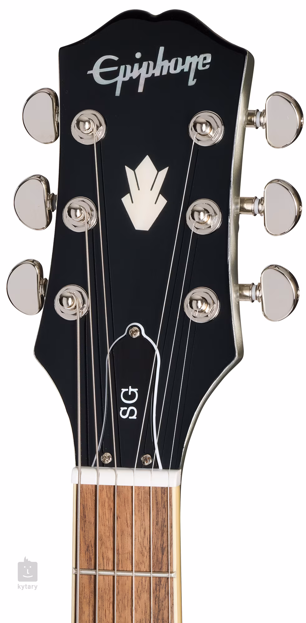 Struny są zamontowane w wysokiej jakości maszynkach do strojenia Grover Rotomatic i poprzez regulowany strunnik LockTone TOM w strunociągu. Stylowy wygląd podkreśla czarny pickguard w stylu "Batwing".