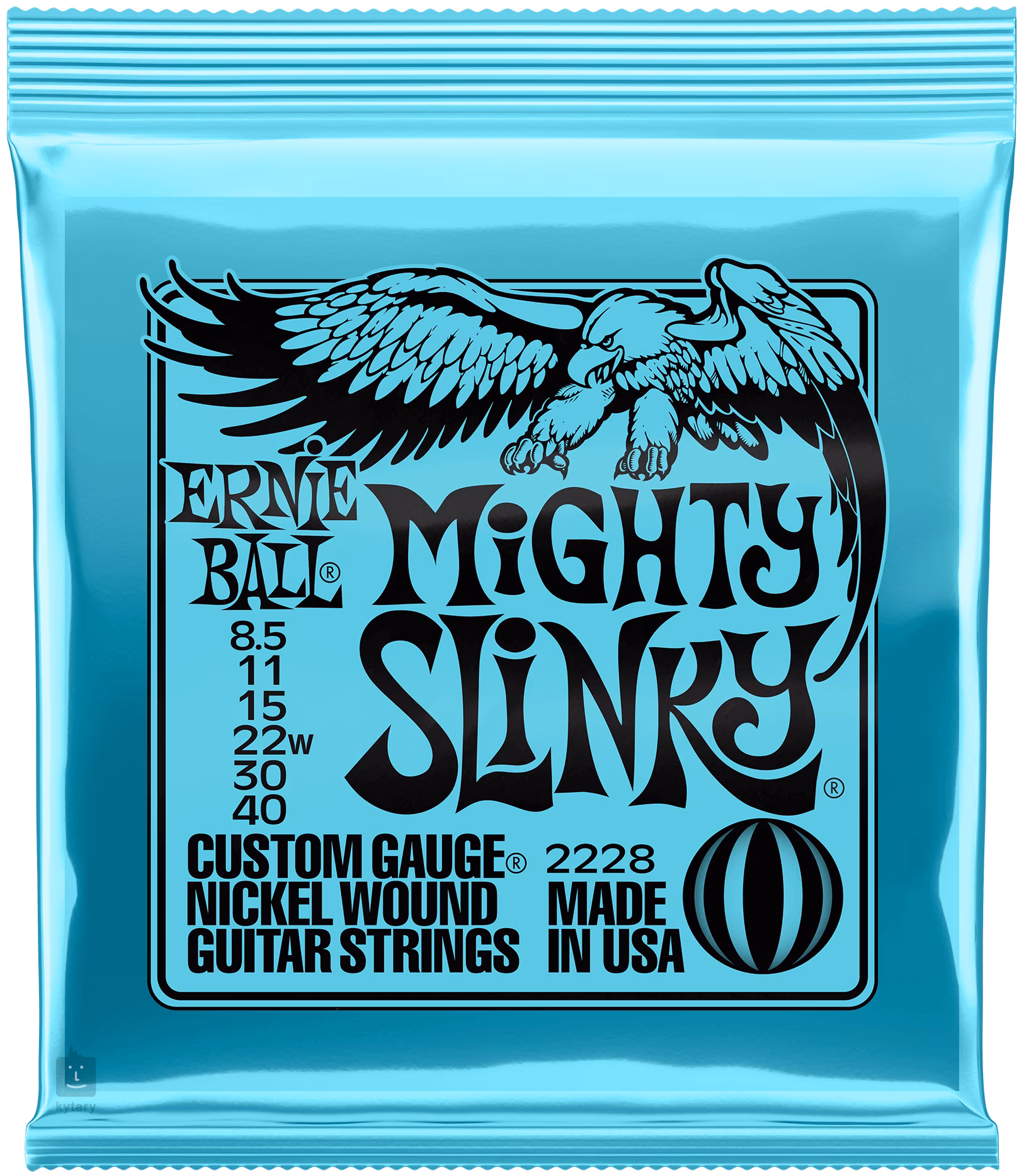 Grubości poszczególnych strun: .0085/.011/.015/.022w/.030/.040