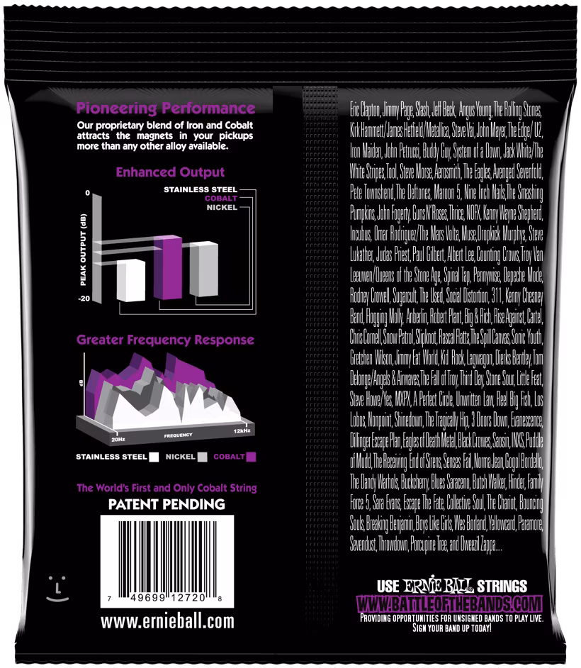 Struny do gitar elektrycznych marki Ernie Ball z serii Cobalt Slinky zostały opracowane tak, aby zmaksymalizować głośność i czystość dźwięku, dlatego wykorzystują najnowocześniejsze materiały i technologie produkcji. Charakteryzują się dużym zakresem dynamiki, dużą ilością wyższych tonów harmonicznych, mocniejszymi basami i czystymi, przebijającymi się tonami wysokimi. Ich magia polega na wykorzystaniu kobaltu, który lepiej współpracuje z polem magnetycznym przetworników, zapewniając precyzyjne wychwytywanie dźwięku. Dzięki kobaltowi struny są również bardziej miękkie i elastyczne, co docenisz zwłaszcza podczas bendingu.