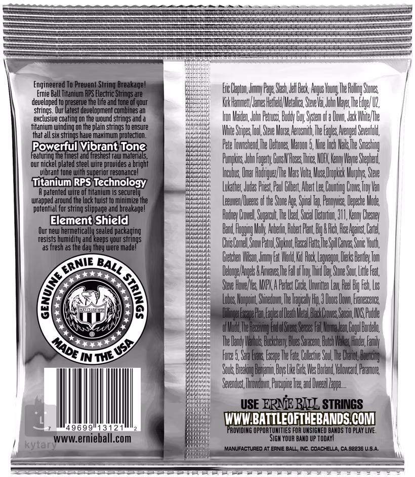 Struny do gitar elektrycznych marki Ernie Ball z serii Coated Titanium RPS są idealnym wyborem dla muzyków poszukujących strun o wyjątkowo długiej żywotności i wysokiej stabilności strojenia. Ich sekretem jest wykorzystanie najnowszych technologii, dzięki którym struny wytrzymują maksymalnie długo i są odporne nawet na najbardziej agresywną grę. Przede wszystkim są one pokryte specjalną nanotechnologią, która zapewnia im odporność na zanieczyszczenia i korozję. Ponadto struny nieowijane są owinięte tytanowym drutem, który zapewnia im maksymalną wytrzymałość, odporność i precyzyjną stabilność strojenia. Pod względem brzmienia struny są podobne do popularnej serii Slinky, dzięki czemu oferują sprawdzone przez lata brzmienie, na którym gitarzyści polegają od ponad 50 lat.
