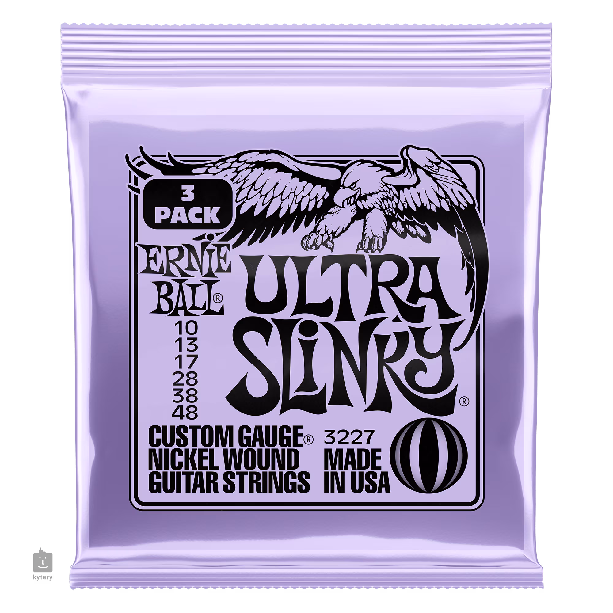 Zestaw trzech kompletów strun z serii Slinky Nickel Wound.