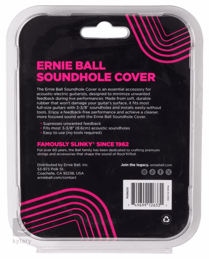 Sprzężenie zwrotne jest jednym z powszechnych problemów w brzmieniu gitary akustycznej i klasycznej. Najprostszym rozwiązaniem tego problemu jest tłumik umieszczony w otworze dźwiękowym w celu wyeliminowania sprzężeń i problematycznych częstotliwości basowych. Ten tłumik od Ernie Ball jest wykonany z miękkiej gumy, która zapobiega uszkodzeniom powierzchni instrumentu. Nadaje się do instrumentów o średnicy płyty rezonansowej 3 i 3/8″ lub 86 mm, co odpowiada większości gitar klasycznych. Zapomnij o sprzężeniach i dopracuj swój dźwięk do perfekcji podczas koncertowania!