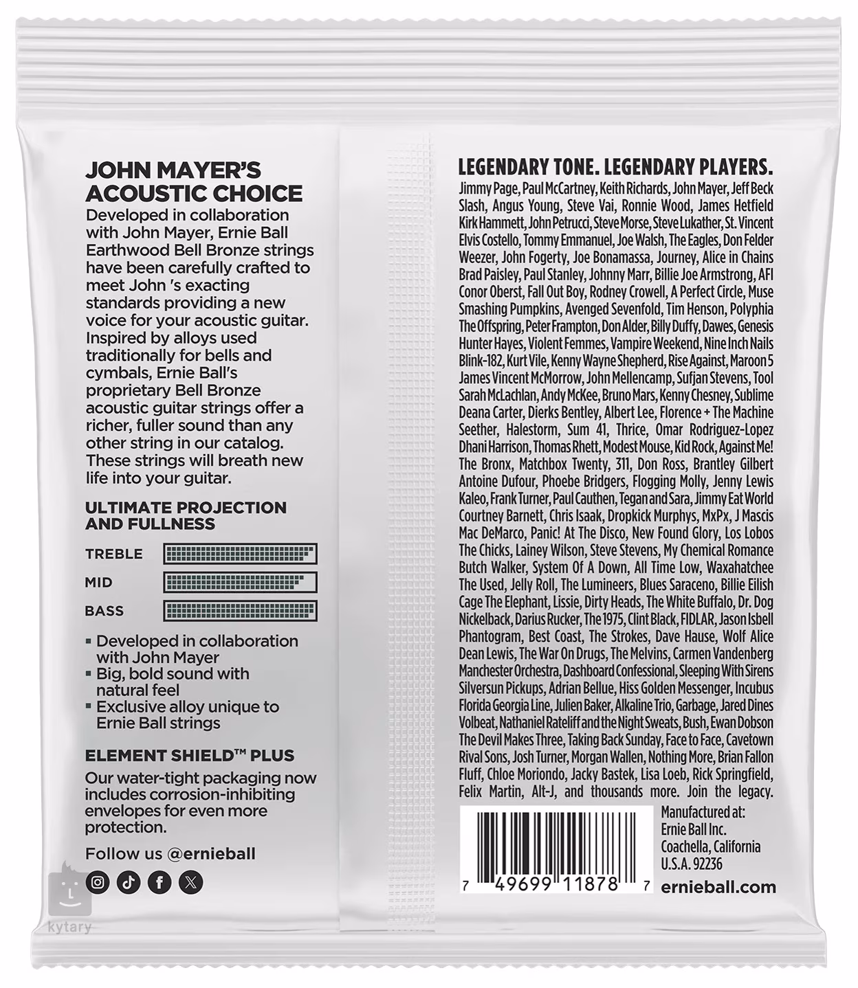 Marka Ernie Ball to światowej sławy producent strun i akcesoriów gitarowych, wytwarzający najwyższej jakości produkty dla gitarzystów i basistów od 1962 roku. Wśród użytkowników znajdują się legendarni muzycy, tacy jak Paul McCartney, Keith Richards, Eric Clapton, Slash, Jimmy Page, John Mayer, Tim Henson i Buddy Guy. Marka wykorzystuje najnowocześniejsze technologie i najwyższej jakości materiały, aby stale poprawiać wrażenia z gry i zapewniać szeroki zakres ekspresyjnych możliwości.