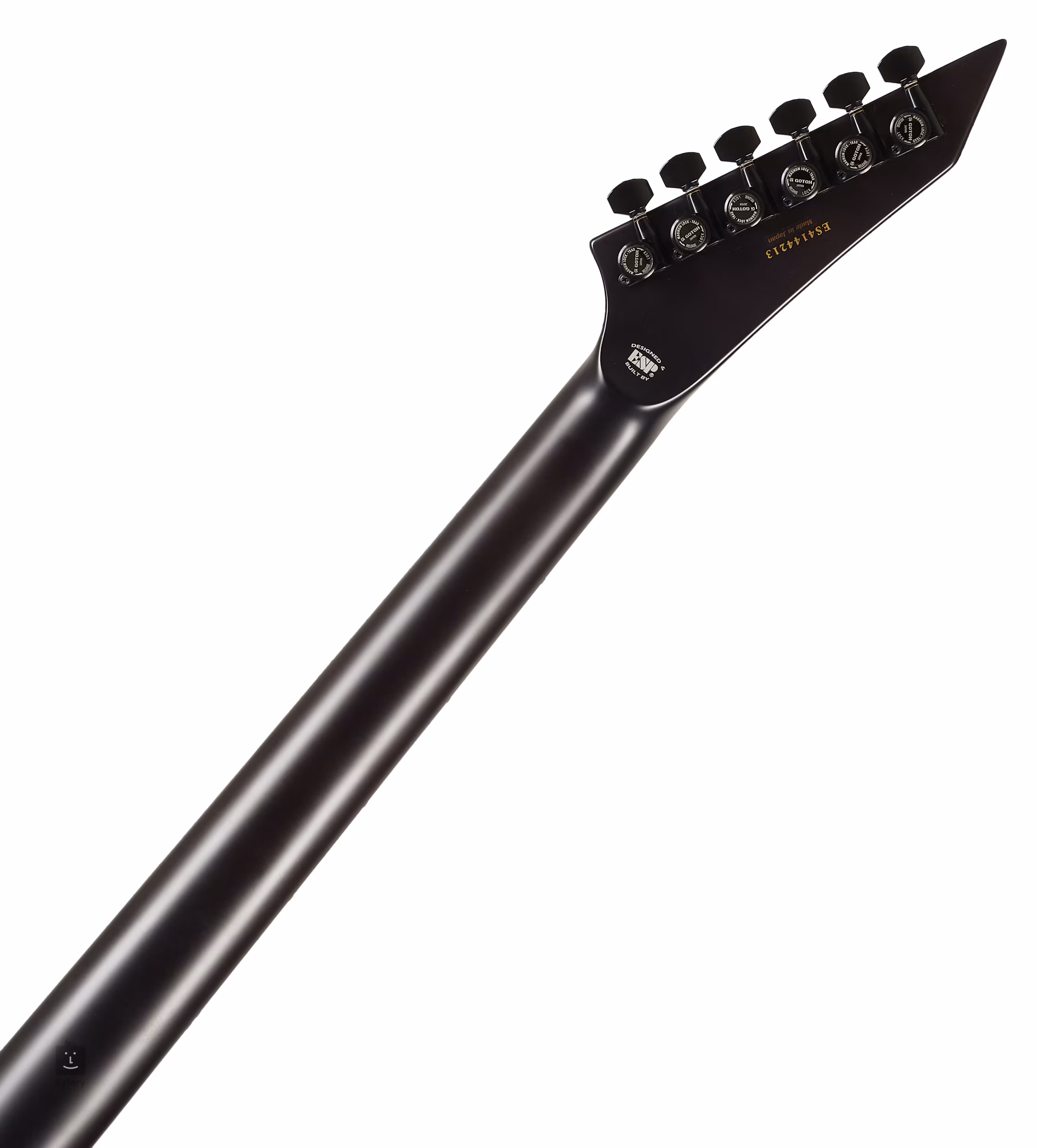 Gitara elektryczna E-II M-II NT już na pierwszy rzut oka rzuca się w oczy dzięki efektownemu wykończeniu Black Natural Fade kontrastującemu z kremowym korpusem i bindingiem główki. Sam korpus instrumentu wykonany jest z mahoniu, a top z olśniewającego klonu (Buckeye Burl Maple). Hebanowa podstrunnica z dwudziestoma czterema progami Extra Jumbo przyklejona jest do szyjki złożonej z trzech kawałków klonu o konstrukcji set-thru, czyli szyjki wpuszczonej głęboko w korpus, i węższym profilu fast Thin U.