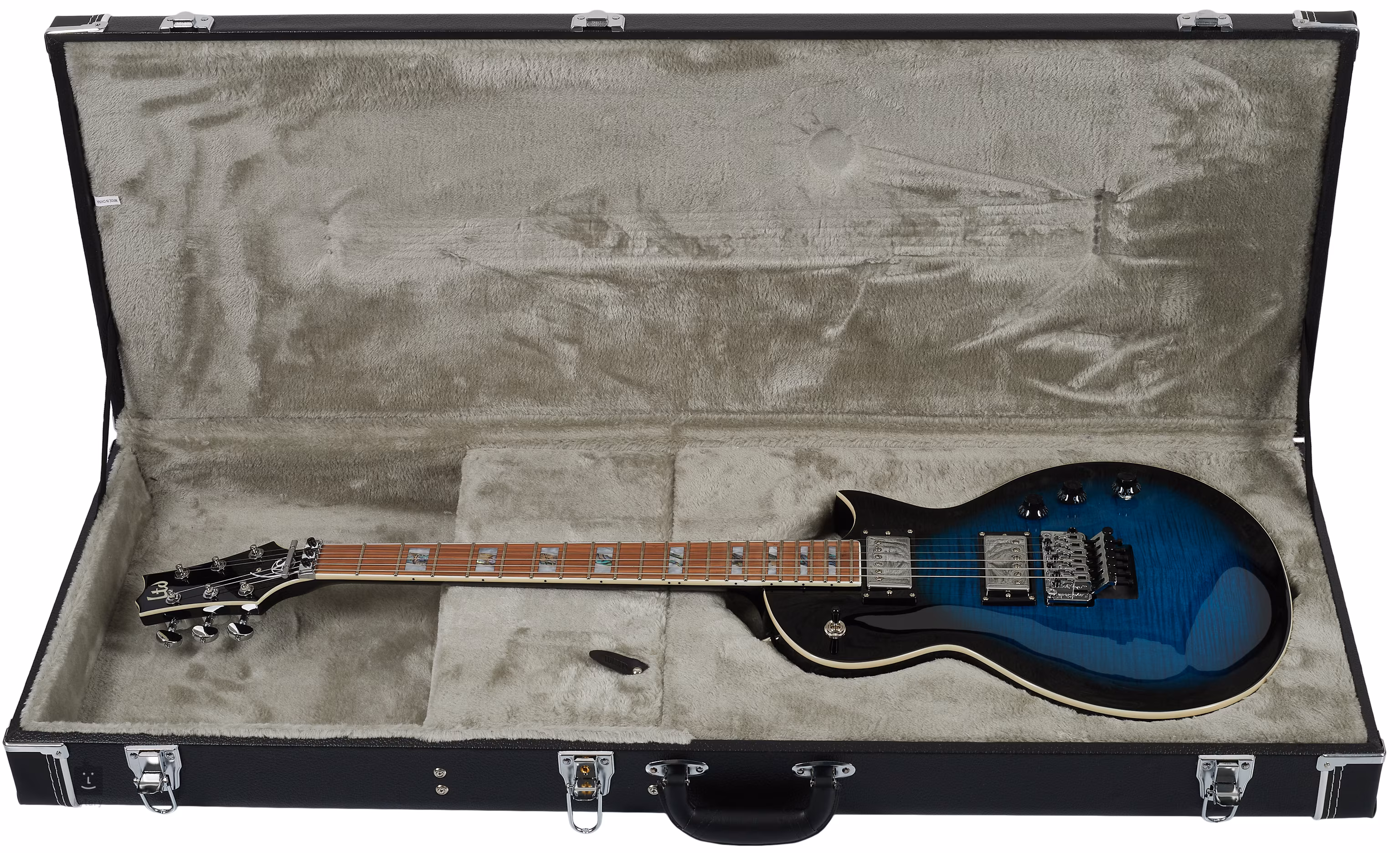 Struny są umieszczone w wysokiej jakości maszynkach do strojenia Grover i tremolo Floyd Rose z podwójną cewką, które można wykorzystać do dodania imponujących efektów dźwiękowych do swojej gry. Blokady na progu zerowym zapewniają maksymalną stabilność strojenia nawet przy częstym używaniu dźwigni. Wyrafinowany wygląd gitary podkreśla błyszczące wykończenie korpusu Black Aqua Sunburst, błyszczące chromowane okucia, jasne bindingi i sygnowane logo firmy na główce.