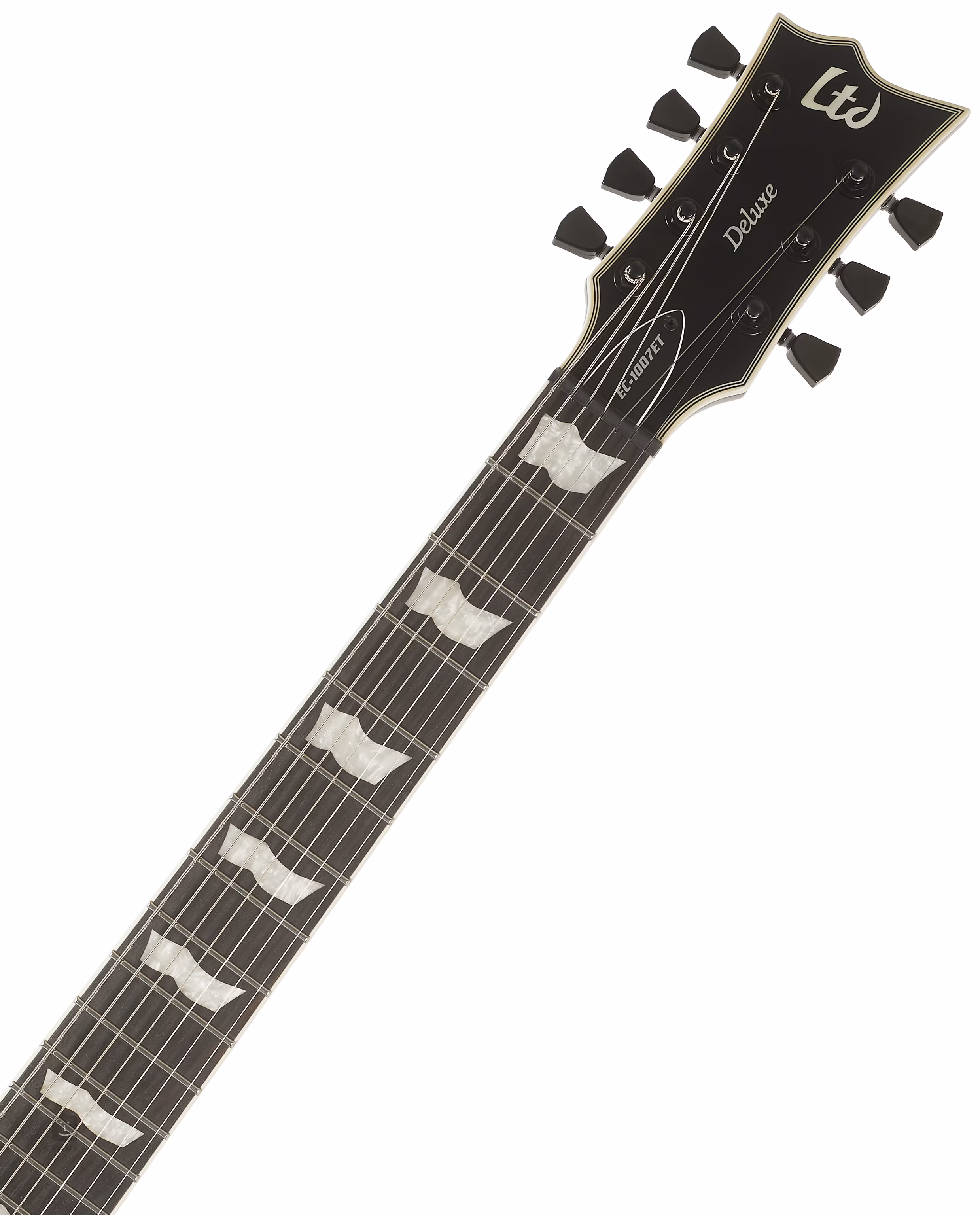 LTD EC-1007 to siedmiostrunowa gitara elektryczna typu Les Paul. Oferuje soczyste brzmienie i wysoki sygnał wyjściowy z dwóch aktywnych humbuckerów EMG, stabilność strojenia dzięki główce Evertune model F oraz stylowy czarny design. Jest to dobry wybór dla gitarzystów lubiących niższe strojenia i współczesną muzykę rockową i metalową - od wymagających profesjonalistów do początkujących.