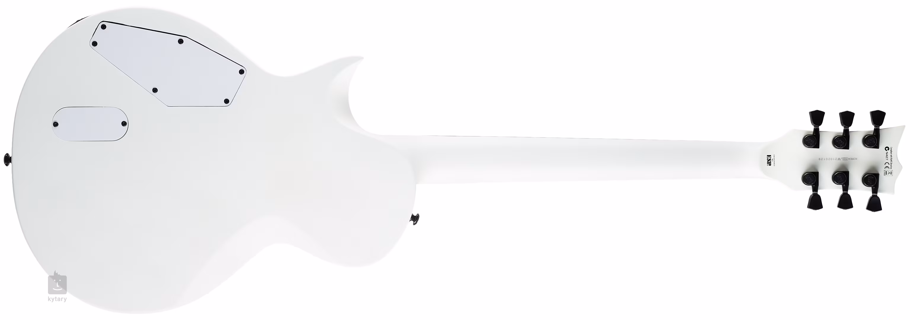 Korpus modelu single-cut EC-ARCTIC METAL SNOW WHITE SATIN wykonany jest z mahoniu. Trzyczęściowa mahoniowa szyjka o konstrukcji set-thru, tj. szyjka wpuszczona głębiej w korpus, połączona jest z hebanową podstrunnicą Macassar, wyposażoną w dwadzieścia cztery progi ze stali nierdzewnej typu Extra Jumbo.