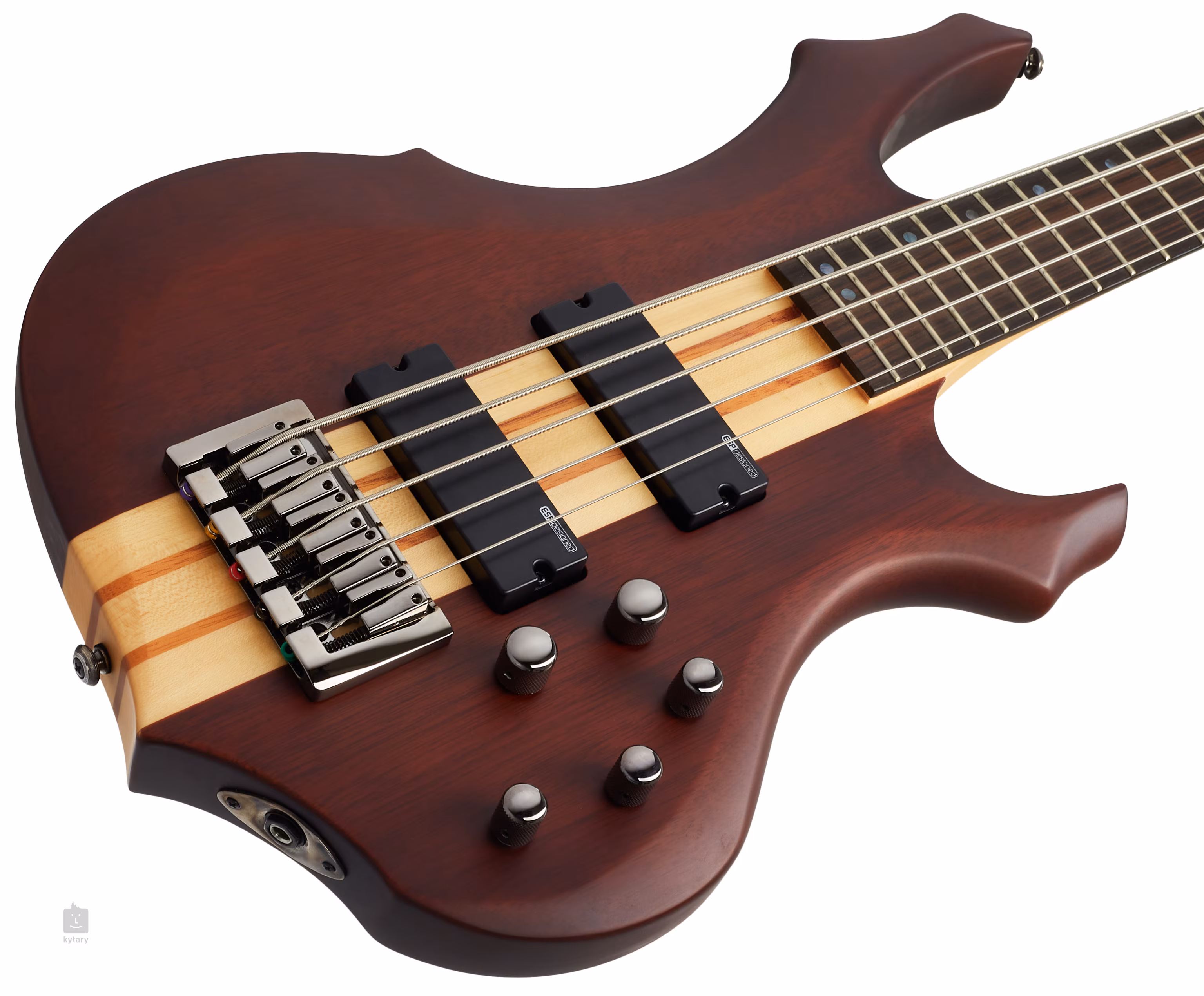 Instrument wyposażony jest w dwa przetworniki typu humbucker, do których podłączona jest aktywna elektronika. Oba są produkcji ESP, humbuckery to model SB-5, aktywny equalizer to typ ABQ-3. Jest to model trójpasmowy, a więc na korpusie znajdziemy potencjometry do regulacji wysokich, średnich i niskich tonów oraz oczywiście potencjometry Volume i Balance. Dzięki tej elektronice nie ma problemu z ustawieniem dokładnego brzmienia, które Ci odpowiada i które przebija się przez brzmienie zespołu.
