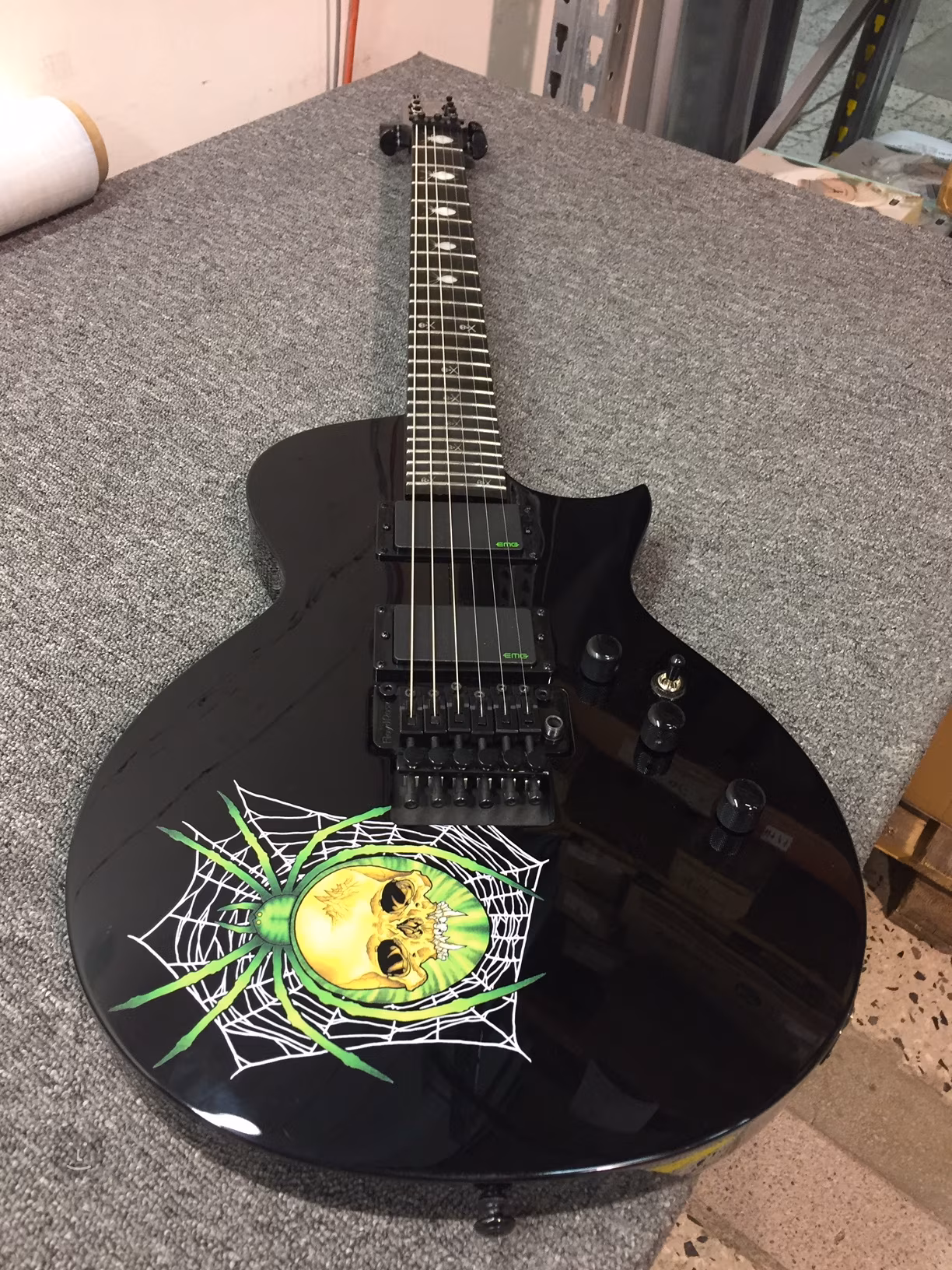Dwa aktywne humbuckery sygnowane przez EMG nadają gitarze charakterystyczne brzmienie Kirka Hammetta z zespołu Metallica. Do jej regulacji służą dwa potencjometry głośności, tarcza tonów oraz trójpozycyjny przełącznik pickupów. Struny umieszczone są w maszynkach do strojenia Grover, a podwójne tremolo Floyd Rose 1000 dodaje imponujące efekty dźwiękowe do Twojej gry. Blokady na progu zerowym zapewniają maksymalną stabilność strojenia nawet przy częstym używaniu dźwigni.