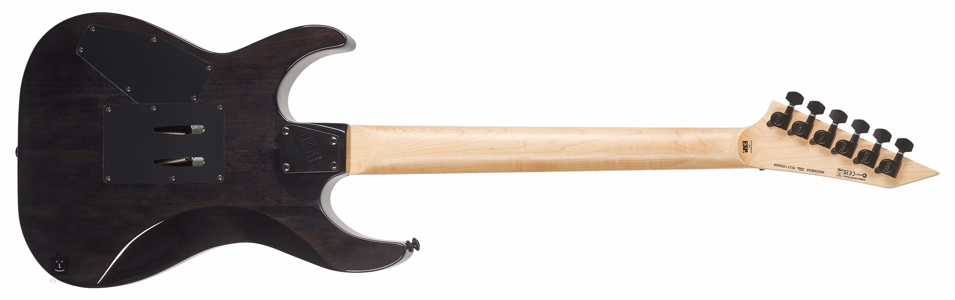 Dwa firmowe, pasywne humbuckery nadają gitarze niezbędnego brzmienia. Struny osadzone są z jednej strony w firmowych maszynkach do strojenia, a z drugiej w podwójnym tremolo Floyd Rose, za pomocą którego wzbogacisz swoją grę o imponujące efekty dźwiękowe. Czarne okucia i logo na główce podkreślają stylowy wygląd instrumentu.