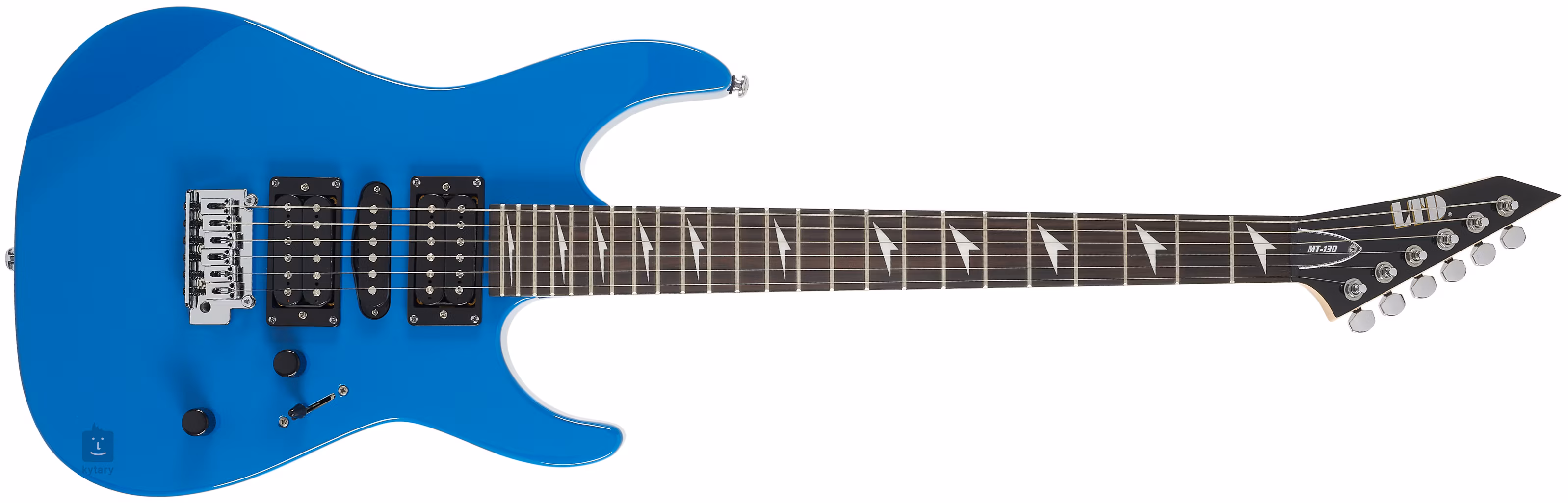 Korpus gitary MT-130 Blue został wykonany z lipy. Przykręcana klonowa szyjka jest przyklejona do nowoczesnej kompozytowej podstrunnicy z dwudziestoma czterema progami Extra Jumbo. Połączenie firmowych przetworników, humbuckera ESP LH-100 na mostku i szyjce oraz przetwornika środkowego ESP LS-100 z pojedynczą cewką, daje gitarze szeroką gamę brzmień, które docenisz w rocku, metalu, punku i innych stylach muzycznych. Dostosuj charakter dźwięku za pomocą standardowych elementów sterujących. Struny zamontowane są w firmowej chromowanej mechanice i tremolo.
