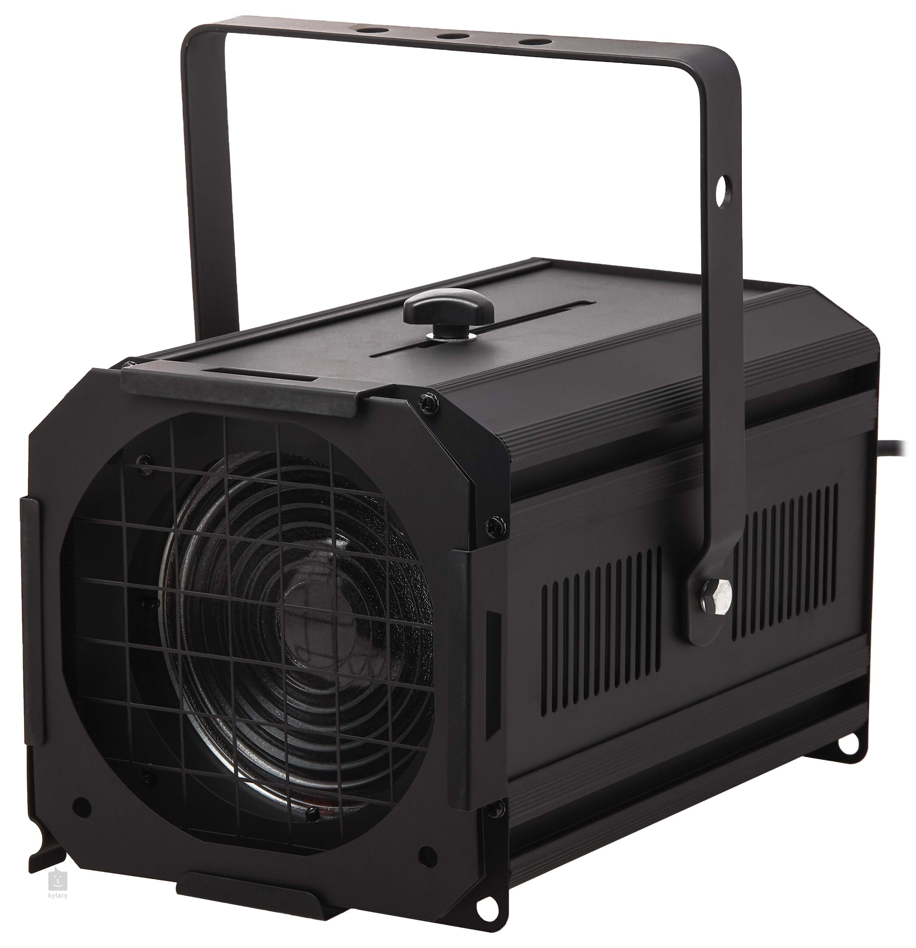 Reflektor teatralny Theatre 650/1000 firmy Eurolite w wersji Fresnel to wysokiej jakości reflektor sceniczny z soczewką Fresnela, który może być używany do oświetlania przedstawień teatralnych, występów tanecznych lub koncertów. Źródłem światła jest żarówka o mocy 650 lub 1000 W (brak w zestawie) z trzonkiem GY 9,5. Reflektor jest wyposażony w ręczny zoom i oferuje kąt wiązki światła w zakresie od 10° do 40°. W zestawie znajduje się ramka na filtry barwne i kratka ochronna.