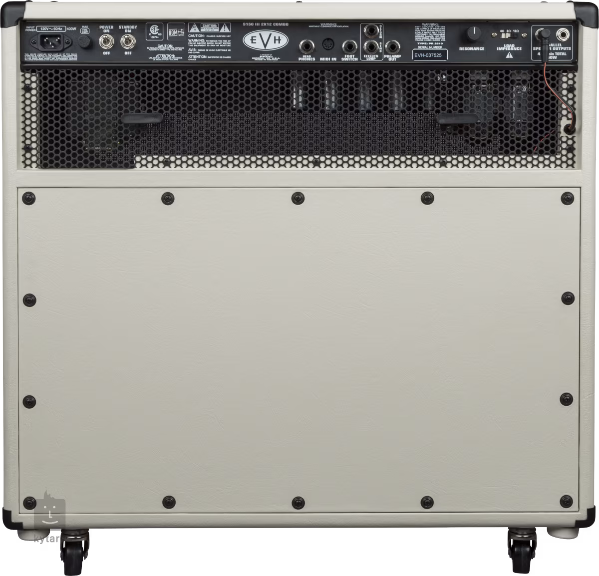 Obudowa combo zbudowana jest z siedmiu warstw brzozowej i klonowej sklejki, a jej sercem są dwa wykonane na zamówienie 12-calowe głośniki Celestion EVH G12H 30W. Dołączone kółka i dwa uchwyty po bokach zapewniają łatwy transport. Stylowy wygląd podkreśla biała teksturowana winylowa pokrywa i tkana przednia kratka.