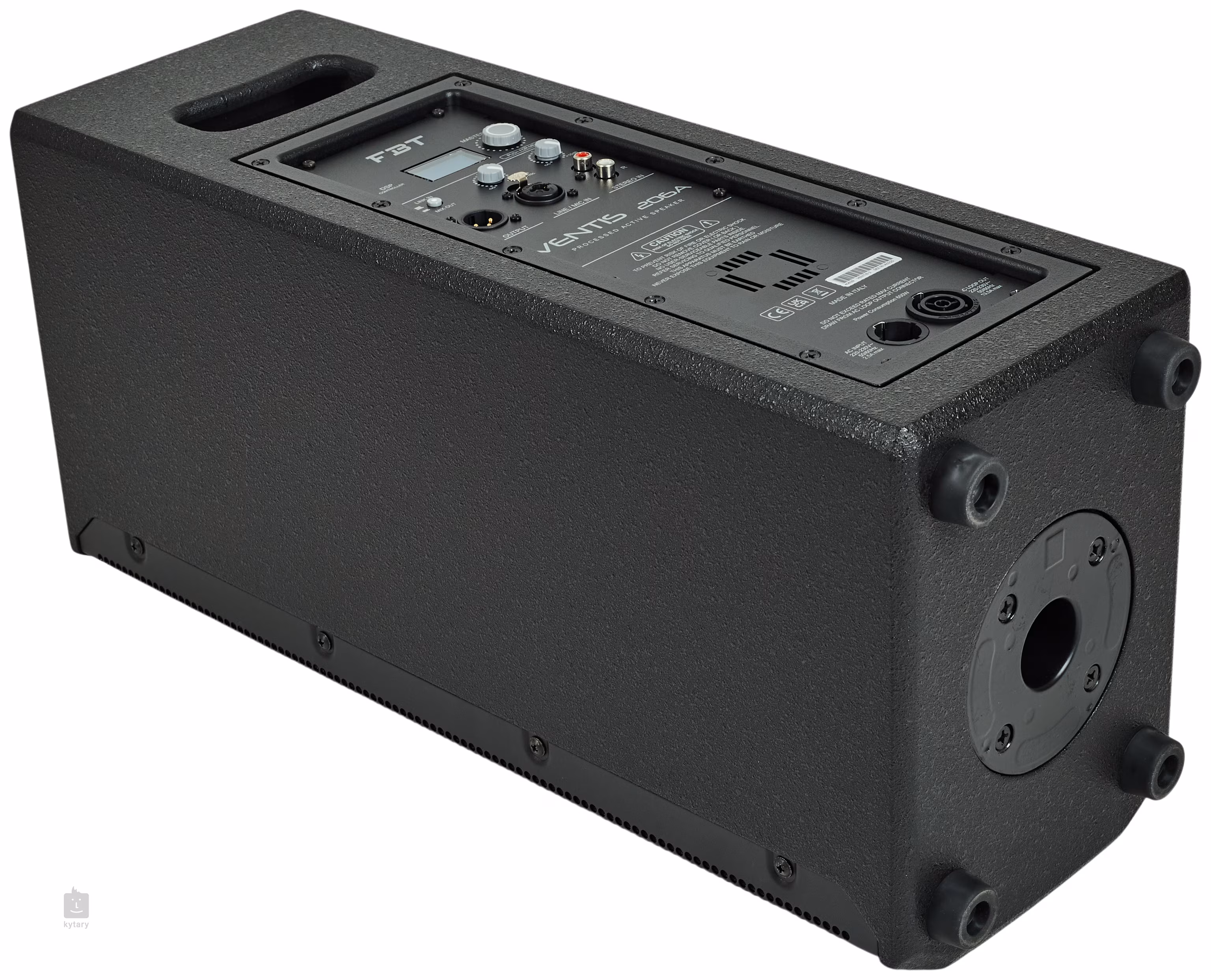 Obudowa z 12-milimetrowej sklejki brzozowej zapewnia wytrzymałość, odporność, a jednocześnie naturalne brzmienie. Głośnik jest wyposażony w zintegrowany procesor DSP z 6 fabrycznymi ustawieniami, które umożliwiają szybkie dostosowanie do różnych sytuacji – od trybu VOCAL zapewniającego maksymalną zrozumiałość mowy, przez DJ dla energicznego brzmienia, aż po WARM dla pełniejszego charakteru średnich tonów. Dzięki temu można łatwo zoptymalizować dźwięk bez skomplikowanej konfiguracji. Konstrukcja obejmuje również otwór 35 mm na statyw, punkty mocowania M10 oraz możliwość montażu na ścianie za pomocą uchwytu typu U. Praktyczne detale, takie jak zintegrowany uchwyt z gumową wyściółką, ułatwiają przenoszenie, a solidna konstrukcja pozwala na wykorzystanie zarówno na scenie, jak i w stałych instalacjach. FBT to renomowany włoski producent z długą tradycją w dziedzinie profesjonalnego nagłośnienia, a seria Ventis należy do jego najbardziej udanych produktów. Model 206A stanowi zatem niezawodne, elastyczne i precyzyjne pod względem brzmienia rozwiązanie do szerokiego spektrum zastosowań.