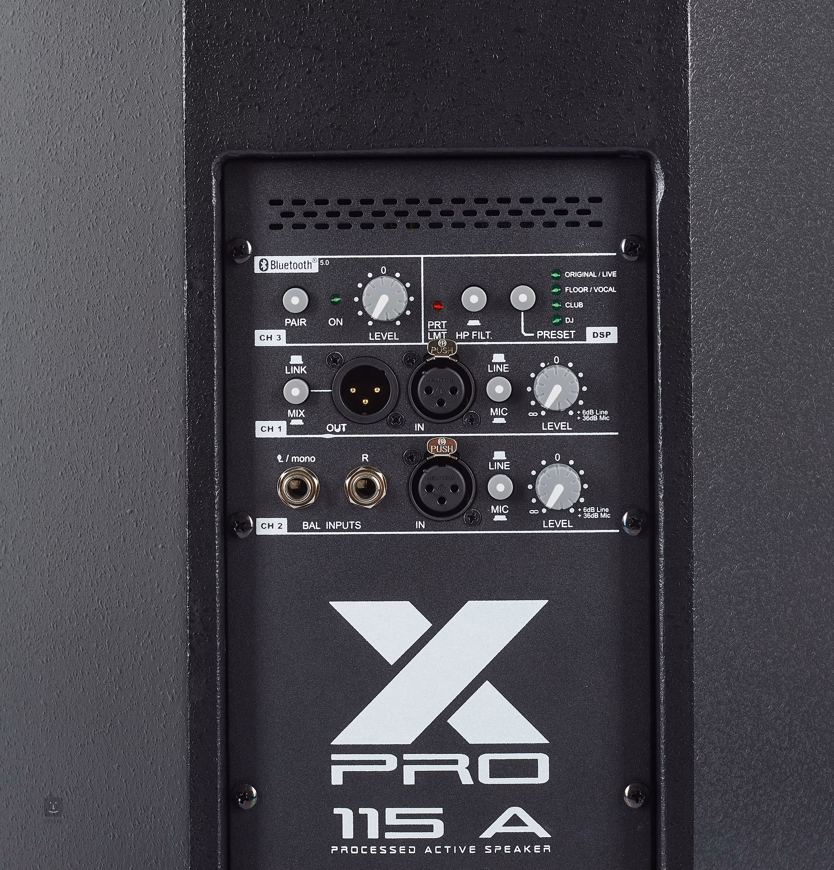 X-PRO 15A to dwudrożny aktywny głośnik wyposażony w 15-calowy głośnik niskotonowy i 1-calowy głośnik wysokotonowy, które wraz ze wzmacniaczem klasy D wytwarzają maksymalną moc wyjściową do 1200 W. Głośnik zawiera wysokiej jakości i przyjazny dla użytkownika procesor DSP z czterema zaprogramowanymi ustawieniami EQ. Tylny panel oferuje elastyczną łączność w postaci wejść XLR, Jack 6,3 mm, wyjścia XLR do połączenia z innym systemem PA i Bluetooth 5.0 na trzecim kanale. Znajdziesz tu również przełączniki filtrów HP On/Off, Mic/Line i selektor presetów DSP.