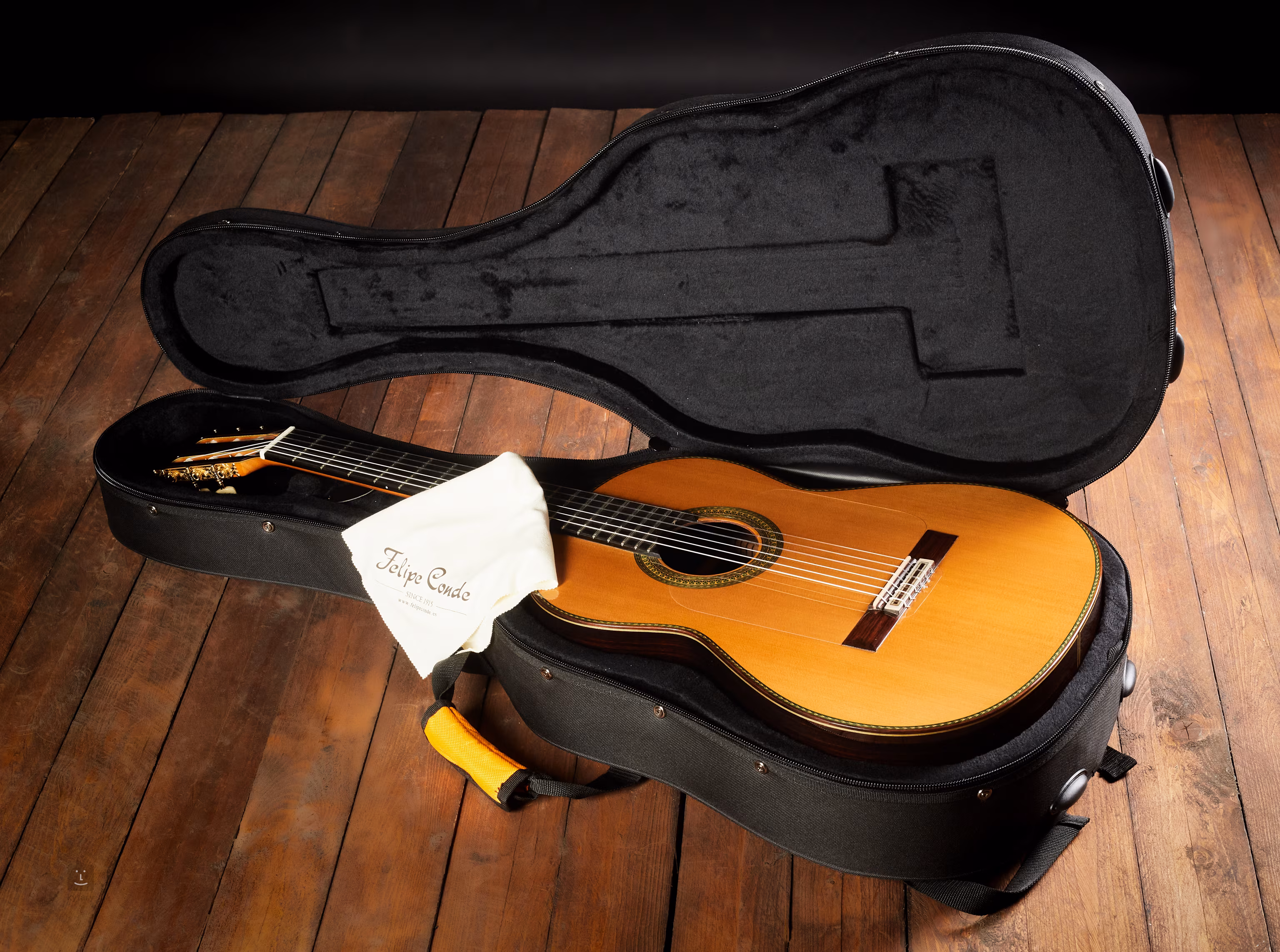 Size: 4/4 Construction / Acoustic: Full Solid Cutaway: no Top: Cedar Back / Sides: Indiana Rosewood Neck: Cedro Fretboard: Ebony Tuning Machines: Spain Top qality Bridge: Rosewood Colour / Finish: Natural French polish top, Nitrocelulose back and sides Finish: High Gloss Scale Length: 25,59" (650 mm) Nut Width: 52,0 mm Including: Hardcase Country of Origin: Spain