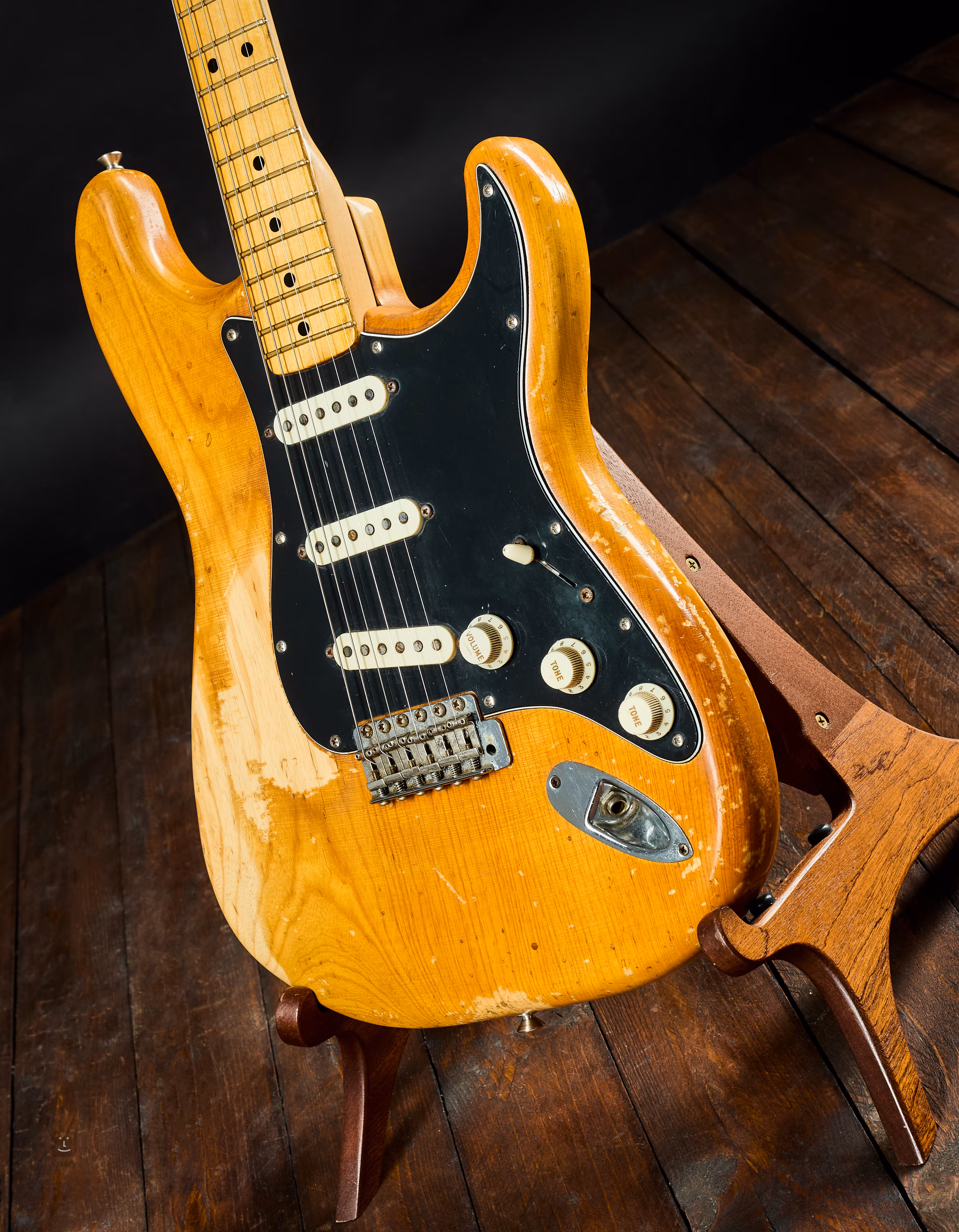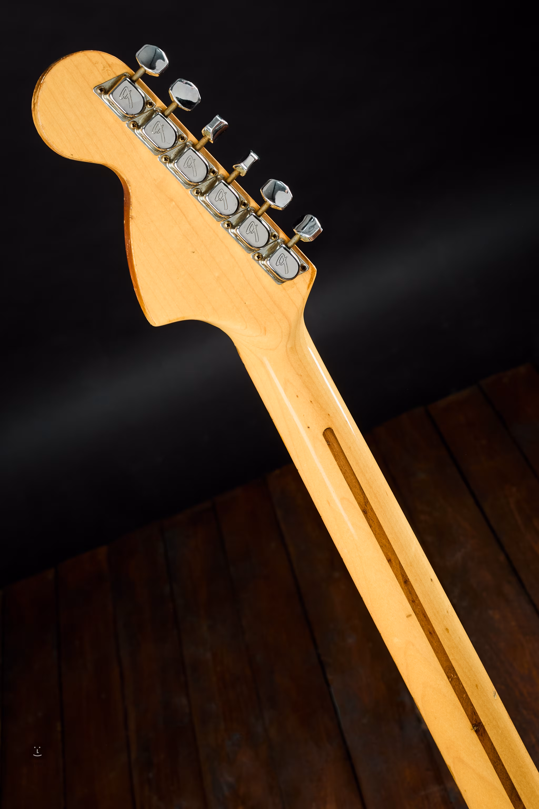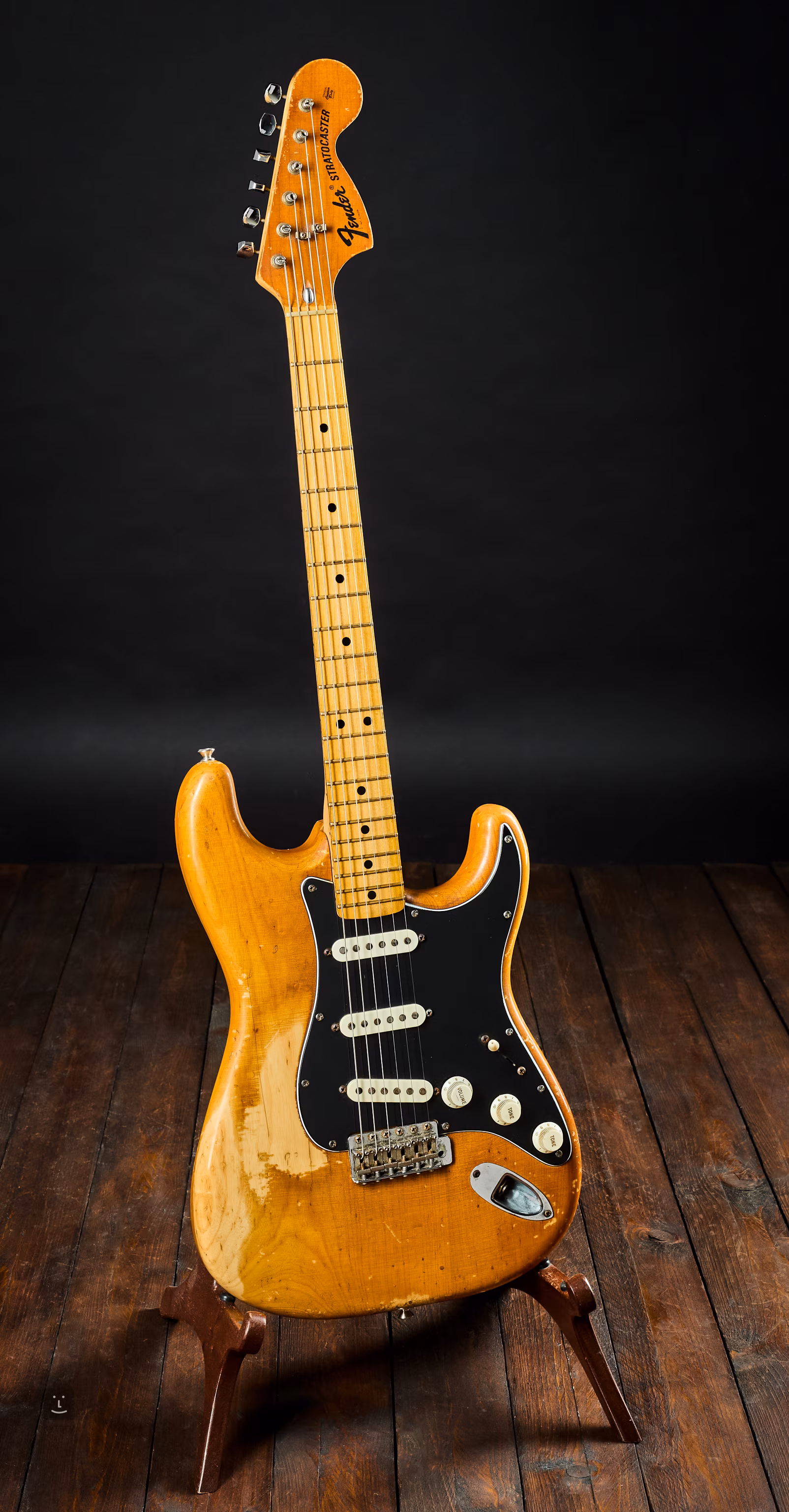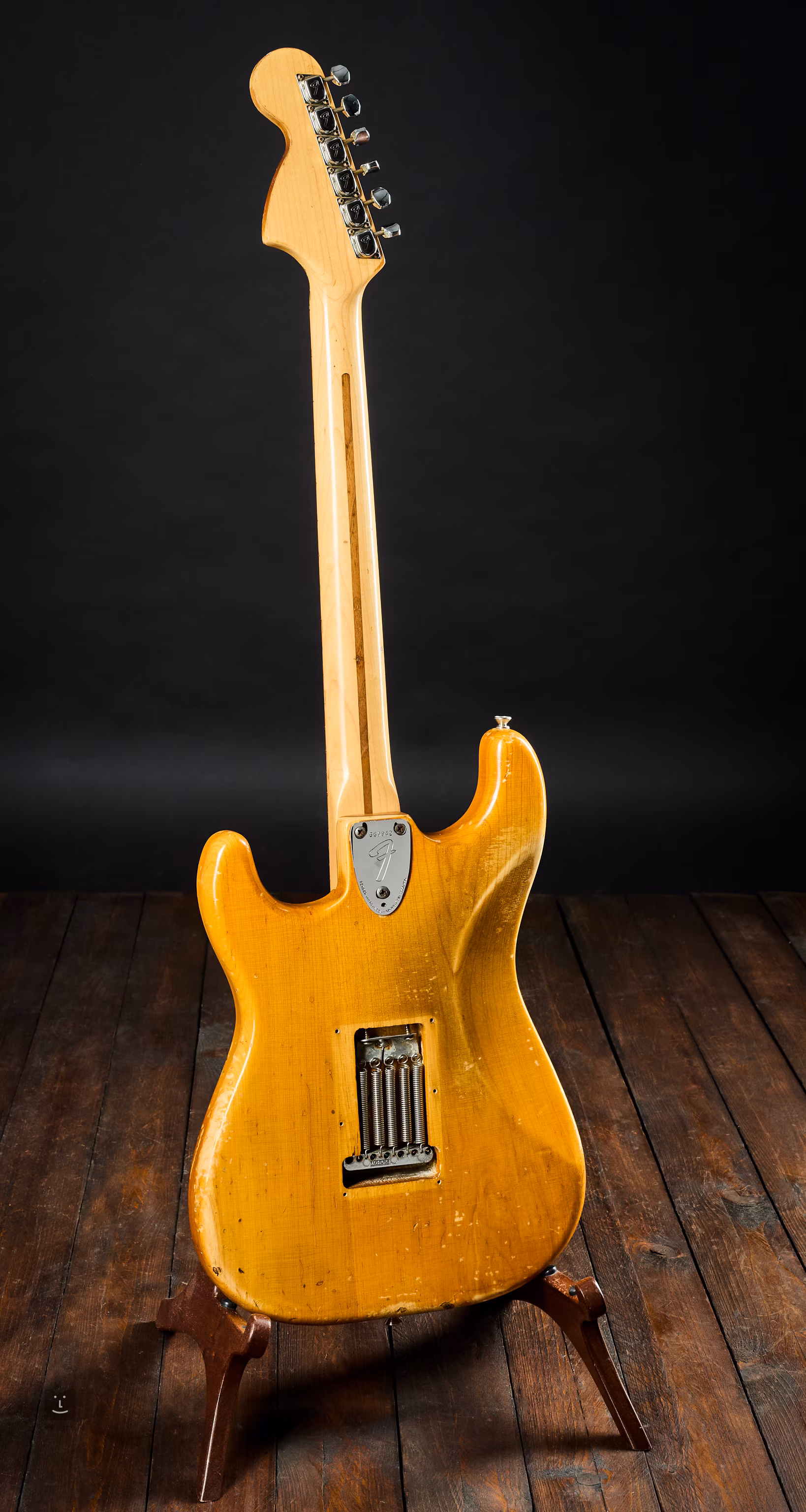 Przetworniki są oryginalne z datą 1975 r., data na stopce gryfu jest nieczytelna, ale wszystkie części wyglądają na oryginalne, a numer seryjny również wskazuje, że ta gitara Strat pochodzi z 1975 r.