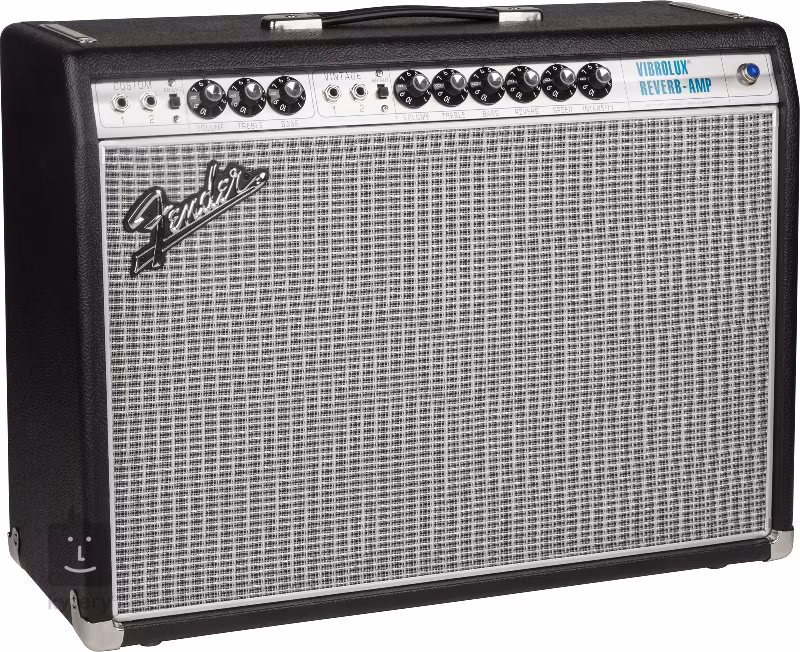 The guitarist with an eye and ear for late-'60s Fender "silverface" style will love the '68 Custom Vibrolux Reverb, which honors the classic look and great sound of that era's amps. The moderately powered Vibrolux Reverb received a fresh new face in 1968—a silver-and-turquoise front panel with aluminum grille cloth trim, with tone, reverb and tremolo that was still pure Fender. That's all available in the 2x10" '68 Custom Vibrolux Reverb, too, which also has modified all-tube circuitry, vintage channel for traditional silverface tone, custom channel with Bassman® tone stack, and reduced negative feedback for greater touch sensitivity and quicker gain onset.