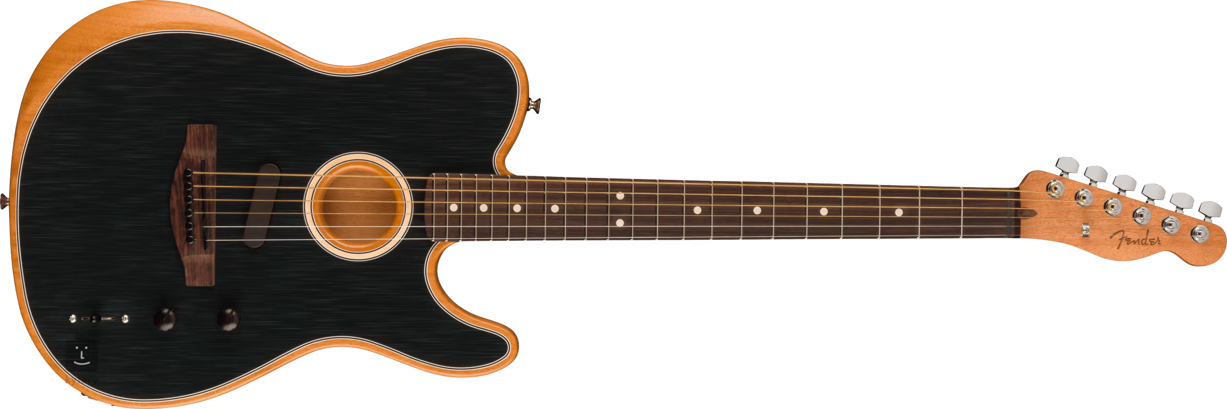 Brzmienie jest rejestrowane przez dwa przetworniki. Magnetyczna cewka pojedyncza zapewnia autentyczne brzmienie gitar elektrycznych Fender, podczas gdy świat gitar elektro-akustycznych jest reprezentowany przez przetwornik piezoelektryczny z cewką pod spodem. Za pomocą gałek reguluje się głośność, stosunek przetwornika magnetycznego do subcewkowego, a za pomocą trójpozycyjnego przełącznika przełącza się między symulacją gitary akustycznej i elektrycznej (gitara oferuje sześć różnych brzmień).