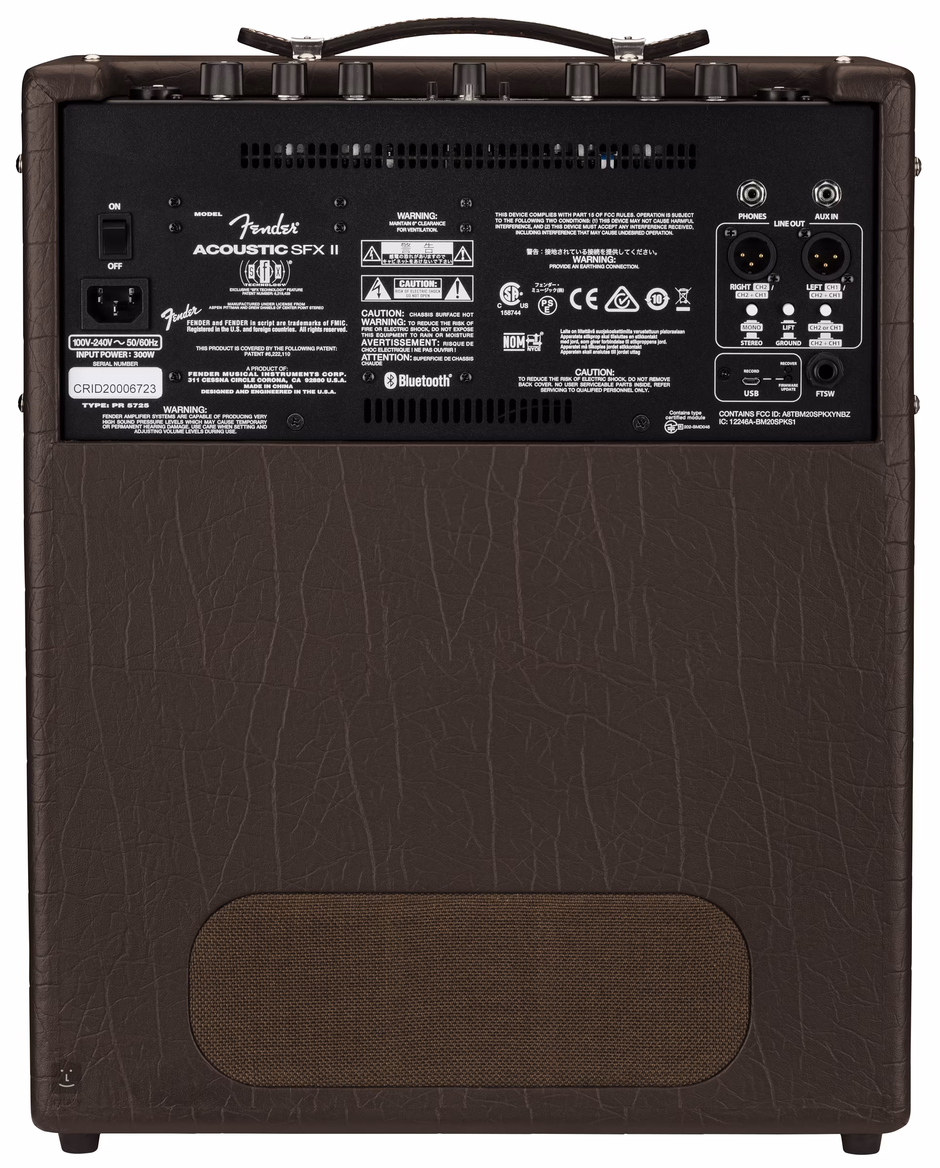 Wszystko to oczywiście zostało ładnie opakowane w konstrukcję ze sklejki z brązową teksturowaną powłoką winylową i brązową tkaniną przepuszczającą dźwięk z wyszytym logo Fender.