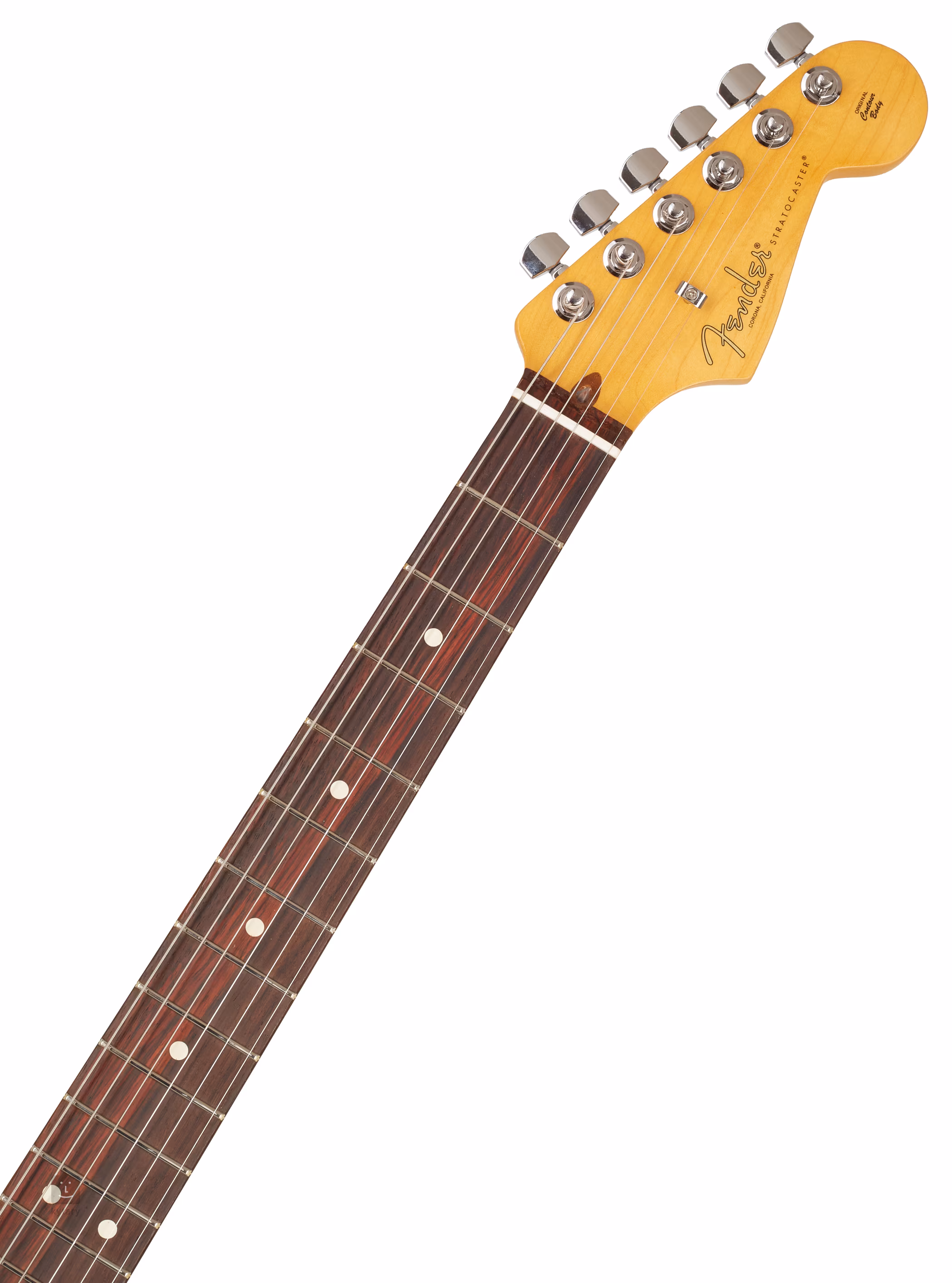 olchowy korpus tego Stratocastera pokryty jest błyszczącym lakierem poliuretanowym. Klonowa szyjka o profilu "Deep C" (skrzyżowanie nowoczesnego C i U) doskonale leży w dłoni - niezależnie od tego, czy grasz szybkie solówki, czy akordy. Dwadzieścia dwa wąskie, wysokie progi oraz białe kropki pozycyjne dzielą palisandrową podstrunnicę. Zaokrąglone krawędzie podstrunnicy oraz nowo ukształtowana stopka szyjki zapewniają łatwą i wygodną grę na podstrunnicy.
