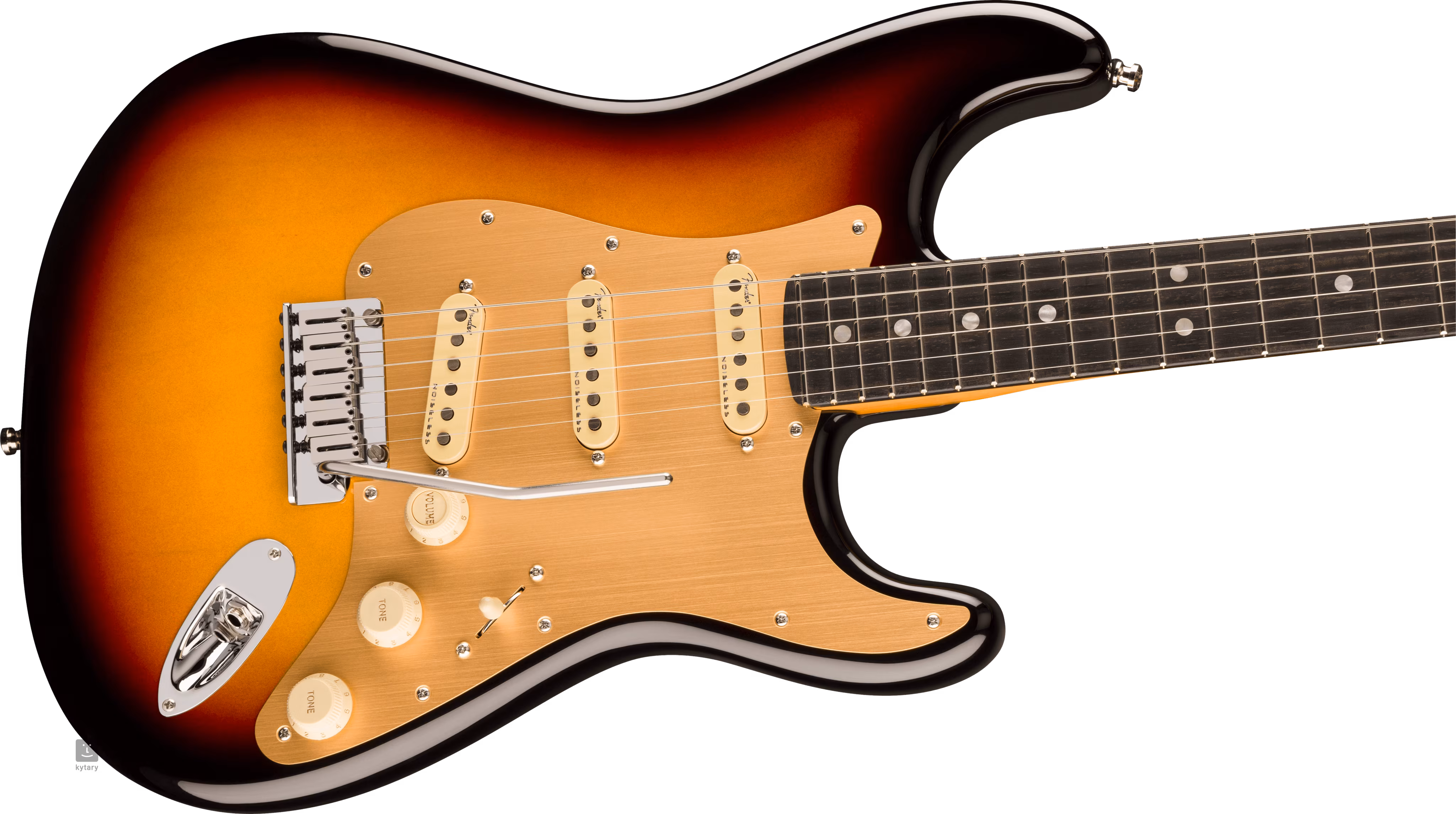 Olchowy korpus modelu American Ultra II Stratocaster EB UB oferuje tradycyjne cechy serii American Ultra w postaci ergonomicznych wycięć w korpusie i ściętej stopki szyjki, które zapewniają idealne wykończenie nawet w wyższych pozycjach podstrunnicy. Klonowa szyjka o profilu "Modern D", czyli węższa szyjka z szerszymi ramionami, zaokrąglone krawędzie podstrunnicy, promień podstrunnicy (10" - 14") oraz dwadzieścia dwa progi Medium Jumbo gwarantują zarówno wygodną grę akordami na progu zerowym, jak i komfortowe wykonywanie szybkich solówek (shred). Świecące kropki z boku podstrunnicy ułatwiają odnalezienie drogi, nawet w półmroku.