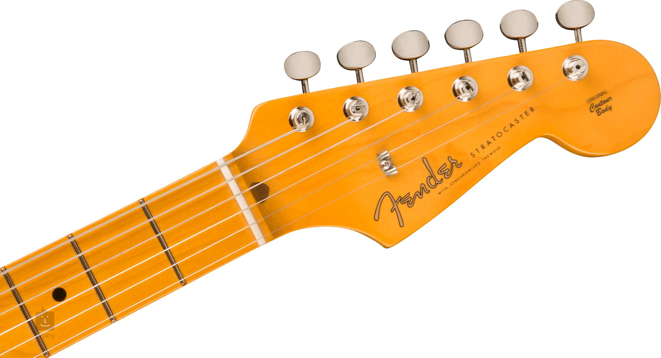 Przetworniki Pure Vintage '57 Stratocaster nadają gitarze autentyczne brzmienie z epoki. Charakter brzmienia można regulować za pomocą potencjometru głośności, dwóch regulatorów barwy i pięciopozycyjnego przełącznika. Struny umieszczone są w maszynkach Pure Vintage Single Line "Fender Deluxe" i zsynchronizowanym tremolo ze stalowym blokiem i stalowymi siodełkami. Stylowe wykonanie podkreśla jednowarstwowy pickguard.
