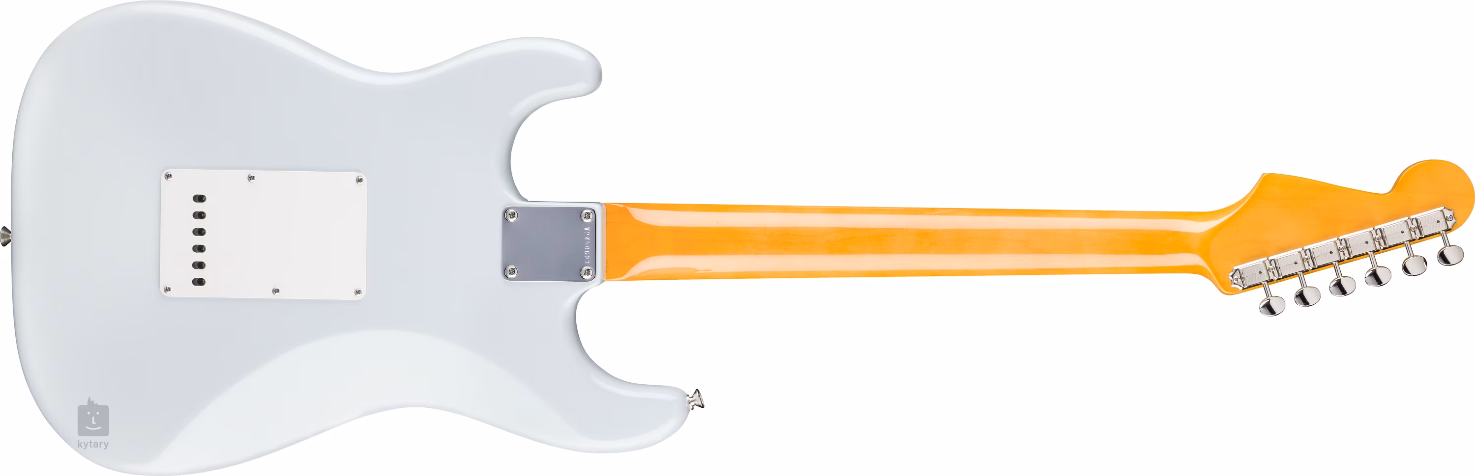 Olchowy korpus modelu American Vintage II 1965 Stratocaster Round-Lam RW SBL pokryty jest cienką warstwą błyszczącego lakieru i wykończeniem Sonic Blue. Klonowa szyjka o autentycznym profilu "1965 C" jest przyklejona do palisandrowej podstrunnicy wyposażonej w dwadzieścia jeden progów Vintage Tall. Orientację na podstrunnicy ułatwiają kropki pozycyjne z imitacji masy perłowej.