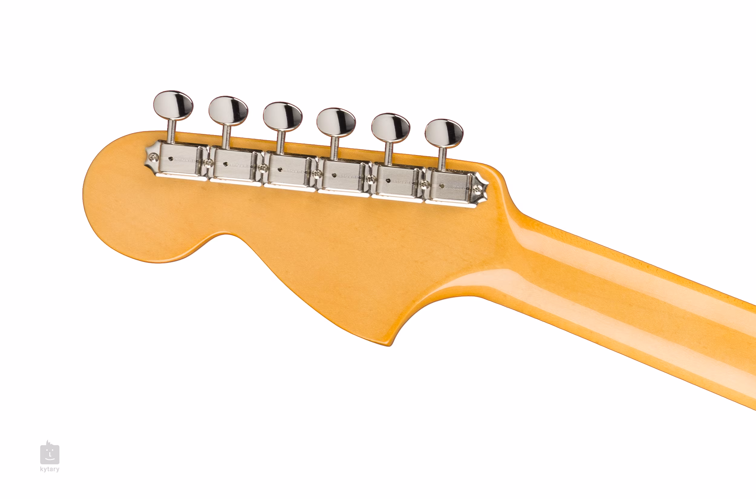 Gitara elektryczna American Vintage II 1966 Jazzmaster RW SGM dokładnie odwzorowuje brzmienie i dotyk oryginałów z futurystycznym designem, który, choć nie rezonował z jazzmanami, był tym bardziej ceniony w surf rocku z lat 60. i późniejszym indie/alternatywnym rocku. Olchowy korpus gitary pokryty jest błyszczącym lakierem nitrocelulozowym, który nie tylko pozwala drewnu oddychać i nie tłumi jego brzmienia, ale także nadaje gitarze czysto osobisty charakter wraz z upływem lat. Klonowy gryf o autentycznym profilu "C" jest przyklejony do palisandrowej podstrunnicy wyposażonej w dwadzieścia jeden progów Vintage Tall.