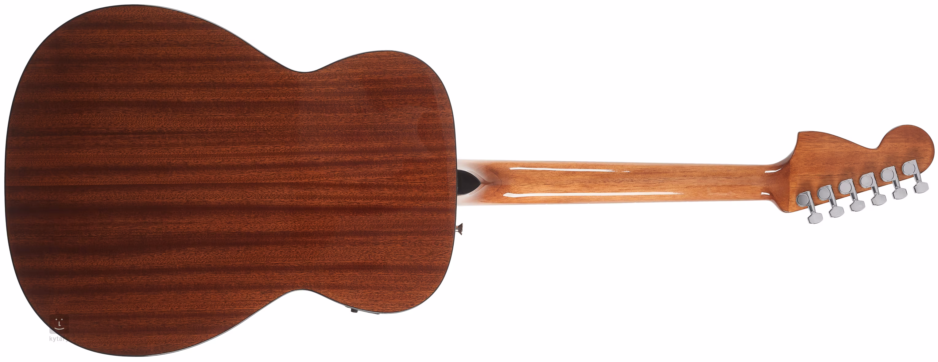 Wzmocnienie dźwięku zapewnia elektronika Fender z regulacją głośności, regulacją tonów i wbudowanym tunerem z tyłu gitary. Struny są utrzymywane w chromowanych, firmowych, odlewanych mechanikach, a podstrunnica z orzecha włoskiego za pomocą zerowego progu z kompozytu micarta. Stylizację podkreśla główka w stylu Fender Mustang, wykończenie sunburst na płycie rezonansowej, czarny binding korpusu i jednowarstwowy czarny pickguard.