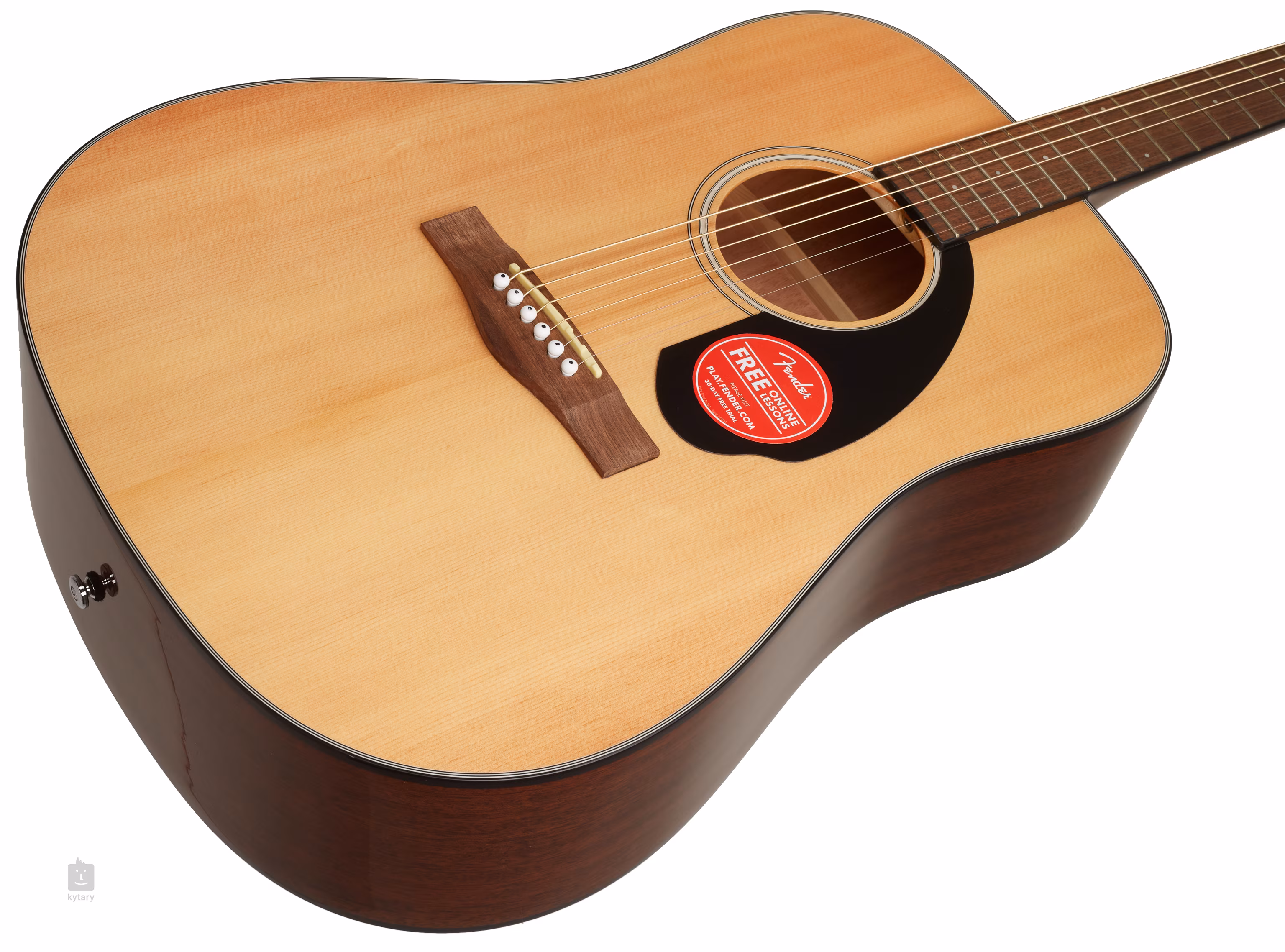 Gitara akustyczna Fender CD-60S WN NAT oferuje bogate i głośne brzmienie charakterystyczne dla popularnych gitar typu Dreadnought. Jest to idealny instrument dla początkujących i doświadczonych gitarzystów, którzy poszukują wysokiej jakości, niedrogiej gitary akustycznej bez zbędnych dodatków. Przednia płyta gitary jest wykonana z litego świerku, tylna płyta i boki z laminowanego mahoniu. Jakość akustyczna korpusu jest wspierana przez obniżone żebrowanie X przedniej płyty. Mahoniowy gryf lepiej leży w dłoni dzięki zaokrąglonym krawędziom palisandrowego podstrunnicy. Orientację na powierzchni podstrunnicy ułatwiają imitacje perełkowe kropki pozycyjne. Struny są zamocowane w firmowych mechanizmach Die-Cast i orzechowym mostku. Wygląd gitary urozmaicają tradycyjne elementy dekoracyjne w postaci lamówki złożonej z czarno-białych linii, rozety z imitacji masy perłowej i praktycznej czarnej płytki ochronnej.