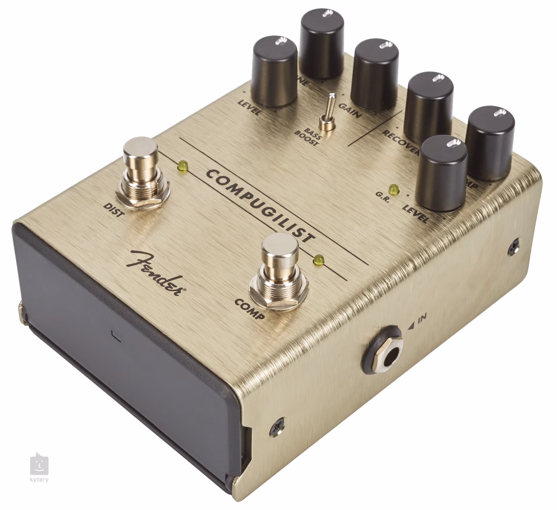 Kompresor i efekty distortion pasują do siebie tak samo, jak musztarda do parówki lub utopeniec do piwa. Pudełko Compugilist amerykańskiego producenta Fender łączy te podstawowe efekty w jednym, przyjaznym dla pedalboardu obudowie. Jeśli chcesz nadać swojemu brzmieniu wspaniały rockowy drive i pięknie śpiewny sustain, to czas poszukać efektu Compugilist. Są to dwa czysto analogowe, niezależnie przełączane efekty, przy czym sekcja distortion opiera się na koncepcji bardziej rockowego pedału mid-gain distortion Pugilist. Oba efekty można więc używać osobno lub jednocześnie. Przejrzyście rozmieszczone potencjometry zapewniają całkowicie intuicyjną obsługę, a oprócz tradycyjnych funkcji można np. za pomocą przełącznika Bass Boost zagęścić cieńsze brzmienie przetworników single-coil. Obudowa urządzenia jest wykonana z lekkiego i wytrzymałego anodowanego aluminium. Potencjometry z podświetleniem LED zapewniają doskonały przegląd aktualnych ustawień nawet w ciemnych zakątkach sceny – każdy, kto kiedykolwiek dostał „czarną kartę” i grał na scenie w ciemności, z pewnością to zrozumie. Efekt jest zasilany za pomocą adaptera 9 V (nie wchodzi w skład zestawu) lub baterii 9 V.