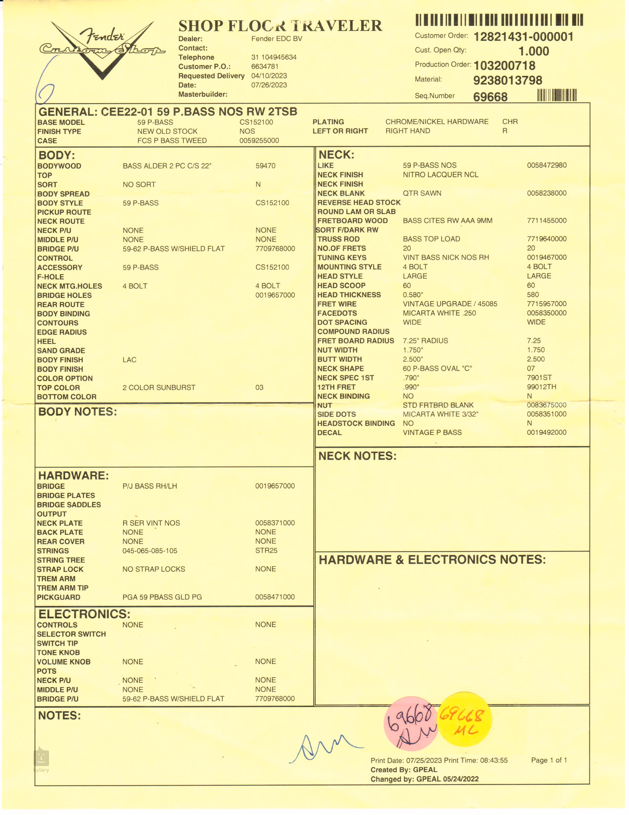 Fender Custom Shop 59 Precision Bass NOS 2TSB