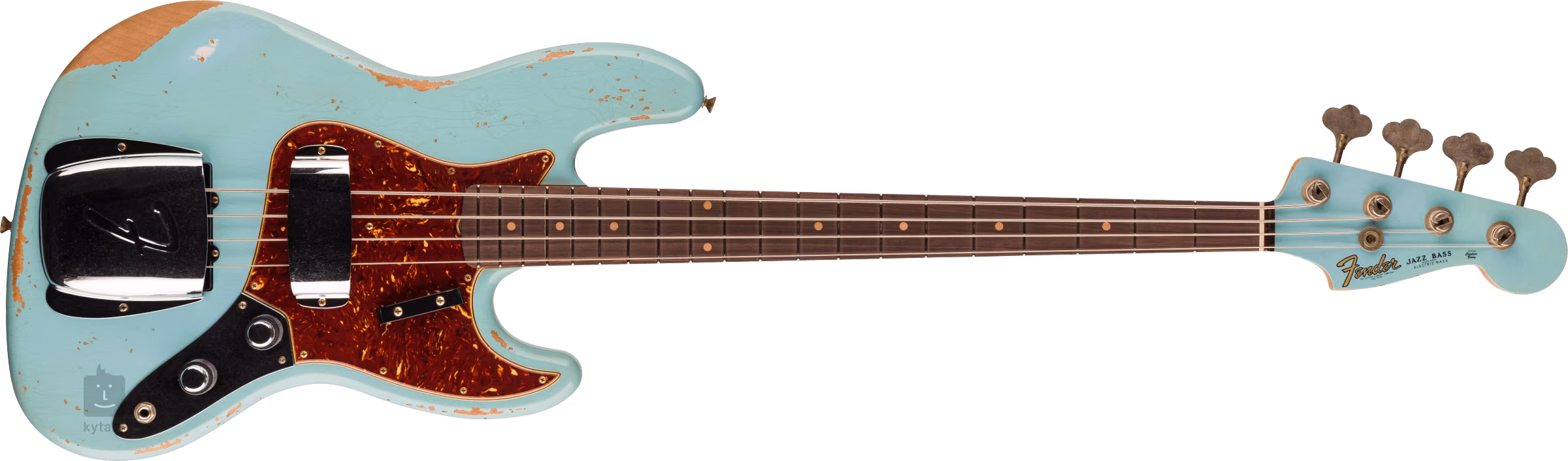 Elektryczna gitara basowa 1961 Jazz Bass Heavy Relic, 3A Rosewood Fingerboard, Faded Aged Daphne Blue z warsztatów Fender Custom Shop niezawodnie przeniesie Cię w czasie do początku lat 60. ubiegłego wieku.