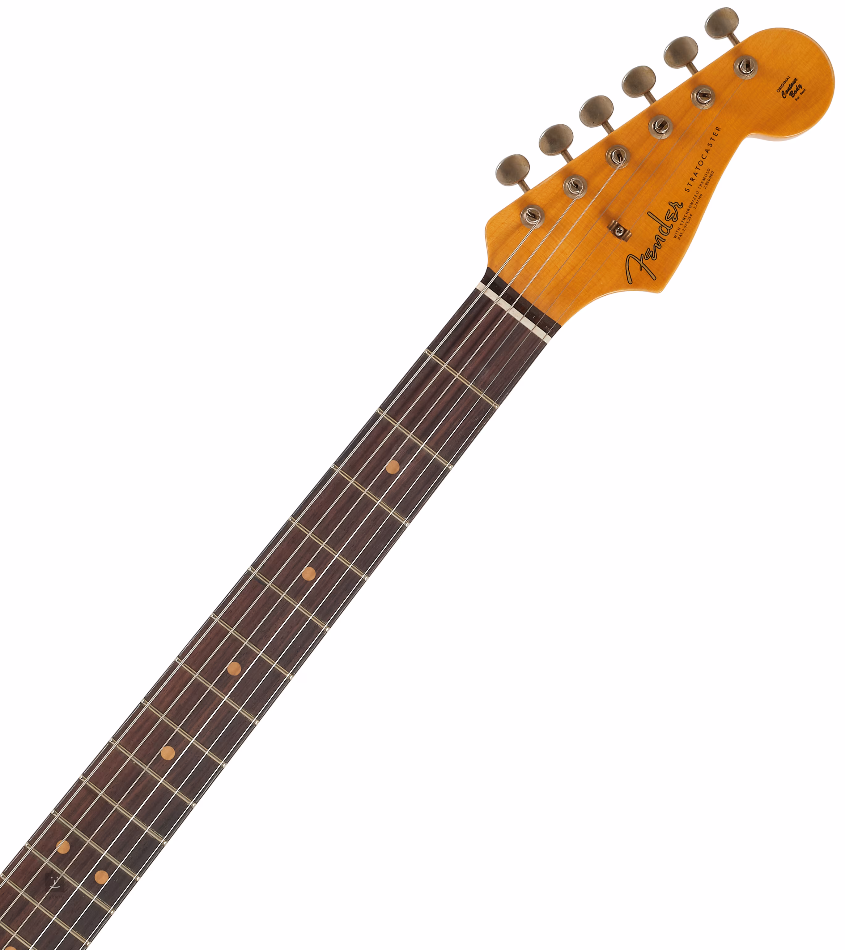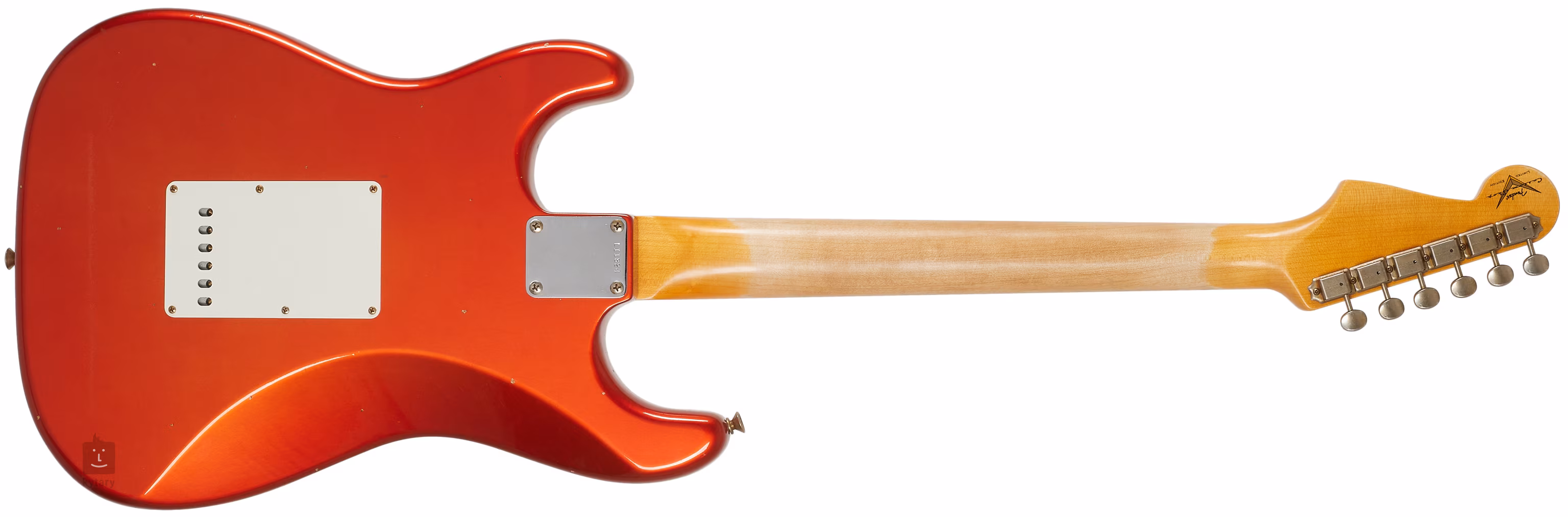 Lekki korpus gitary zbudowany jest z dwóch kawałków olchy. Wykończenie Journeyman Relic w kolorze Candy Tangerine oferuje akcenty sztucznej patyny lakieru i osprzętu, które są zgodne z dziesięcioleciami regularnego, raczej domowego użytkowania. Palisandrowa podstrunnica klasy AAA wyposażona w dwadzieścia jeden progów Narrow Tall (6105) jest przyklejona do klonowej szyjki z profilem "C" Strat z 63 roku.