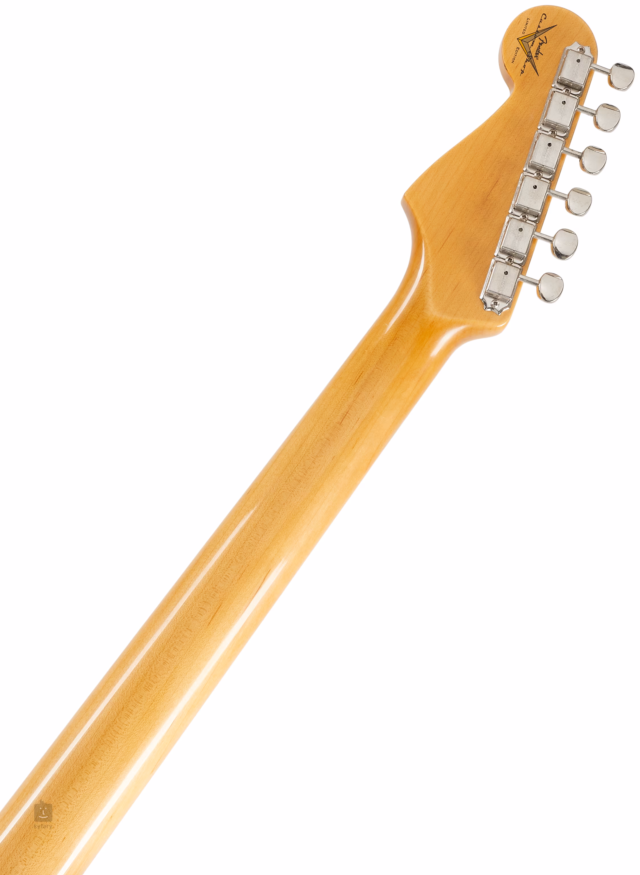 Lekki korpus gitary został wykonany z dwóch kawałków olchy. Wykończenie Journeyman Relic w kolorze Aged Vintage White oferuje akcenty sztucznej patyny, aby dopasować się do dziesięcioleci powszechnego, raczej domowego użytku. Do klonowej szyjki o profilu "C" z epoki 65 Strat przyklejona jest palisandrowa podstrunnica o jakości AAA wyposażona w dwadzieścia jeden progów w rozmiarze Vintage Upgrade (45085). Złożony promień (9,5 - 12 cali) zapewnia wygodną grę i dopasowanie we wszystkich pozycjach progów. Znaczniki pozycji z masy perłowej ułatwiają orientację na podstrunnicy.