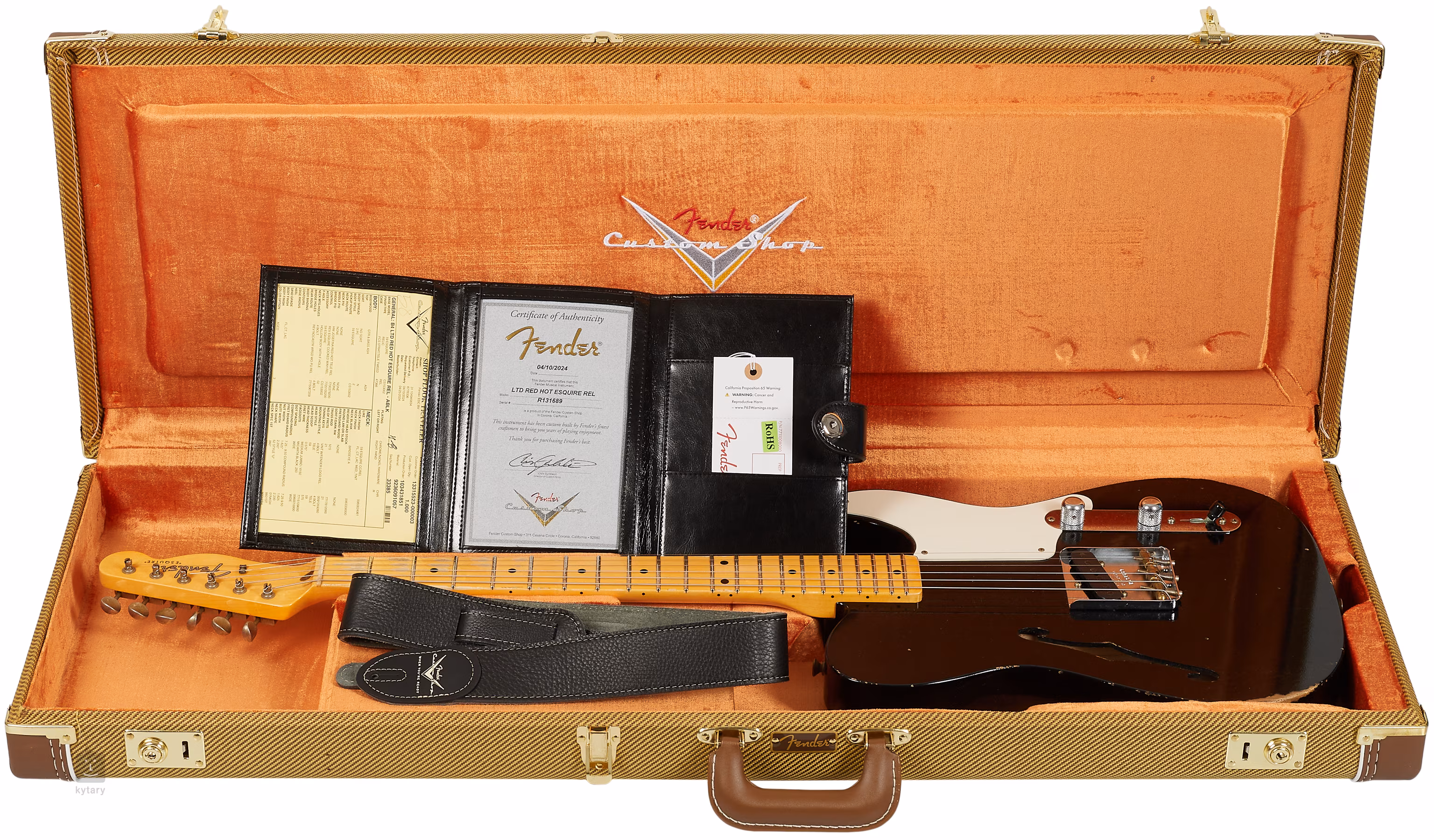 Limitowana edycja Red Hot Esquire - Relic, Aged Black to gitara elektryczna z Fender Custom Shop, która wzbogaca estetykę vintage Fendera o odrobinę nowoczesnej grywalności, oferując naprawdę wyjątkowe wrażenia z gry. Jest to konstrukcja Fender Esquire sprzed modelu Telecaster z pojedynczym przetwornikiem jednocewkowym w pozycji szyjki i dość specyficznym okablowaniem/obwodem, więc w żaden sposób nie jest to brzmieniowo Telecaster bez przetwornika szyjki.