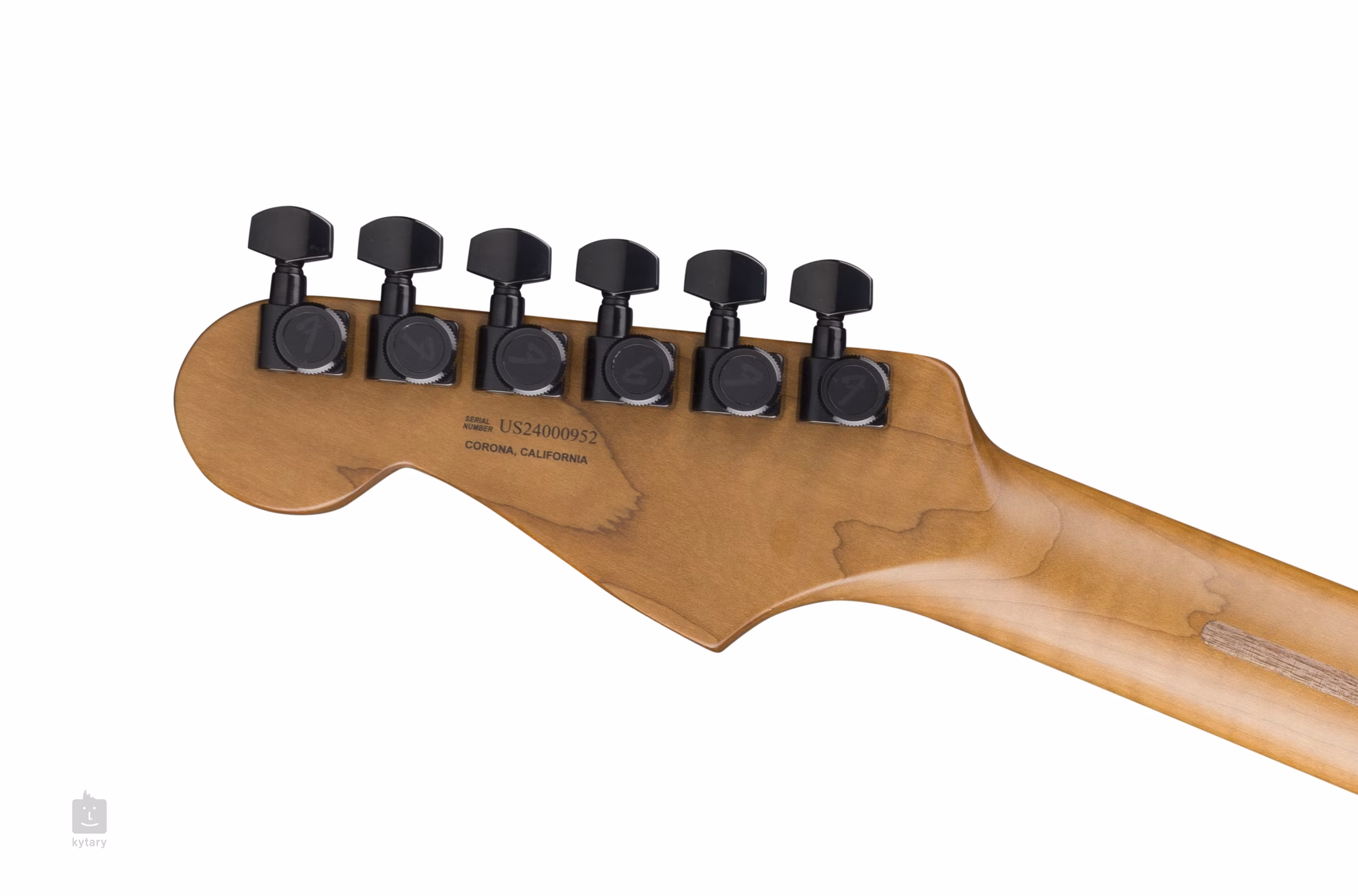 Struny są zakotwiczone w firmowym mechanizmie blokującym (Deluxe Staggered Cast/Sealed Locking) i przez solidny mostek przechodzą przez korpus. Stylowe wykończenie podkreśla kolorystyka Eclipse, trójwarstwowy czarny pickguard i czarny osprzęt.