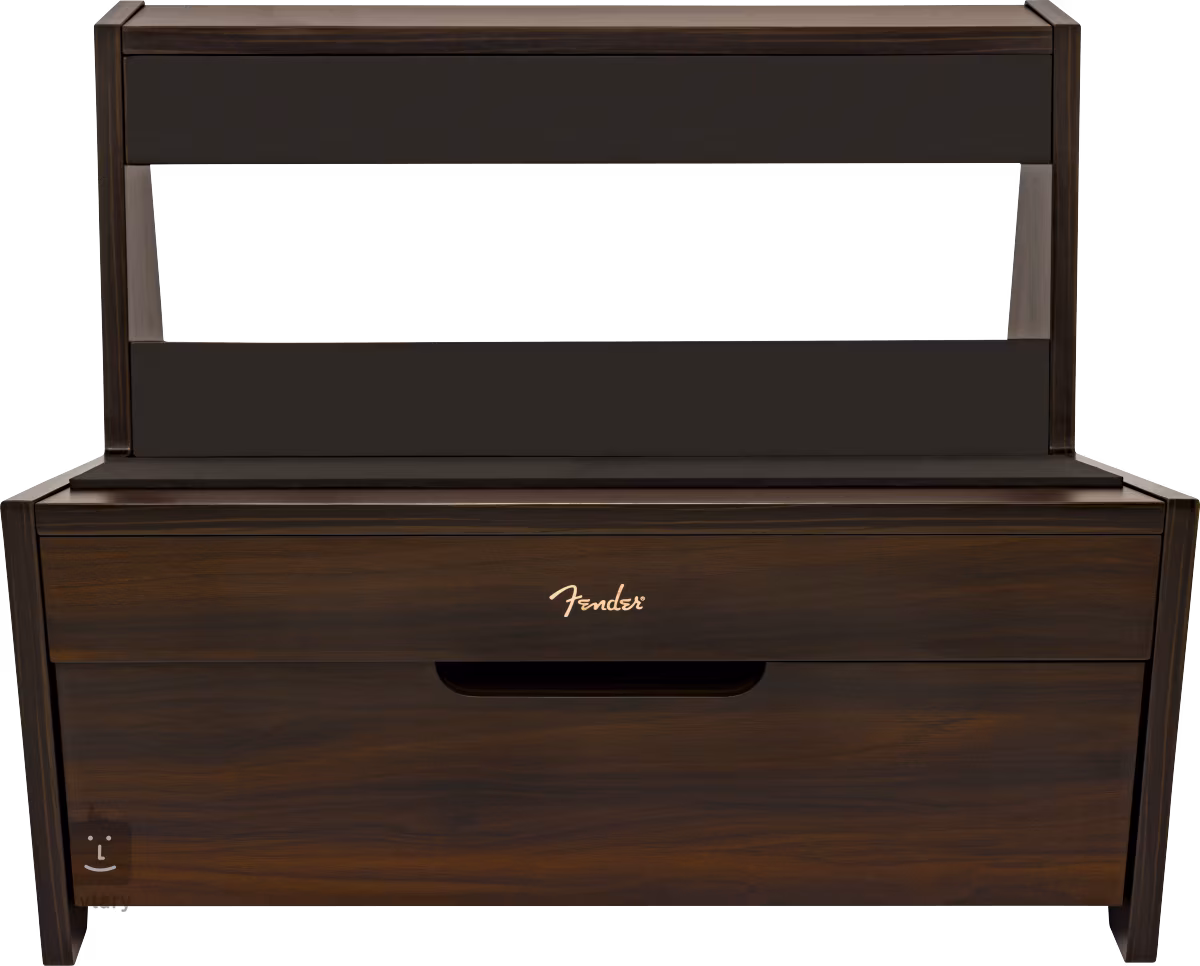 Drewniany stojak na wzmacniacz Fender Deluxe to stylowy stojak na combo, który organicznie wtapia się w meble i wyposażenie domu lub studia nagraniowego. Charakteryzuje się konstrukcją ze sklejki z eleganckim orzechowym wykończeniem i panelami z pianki EVA, maksymalną nośnością do 100 funtów lub około 45 kg, 15-stopniowym nachyleniem dla optymalnej dystrybucji dźwięku oraz dolną szufladą do przechowywania akcesoriów.
