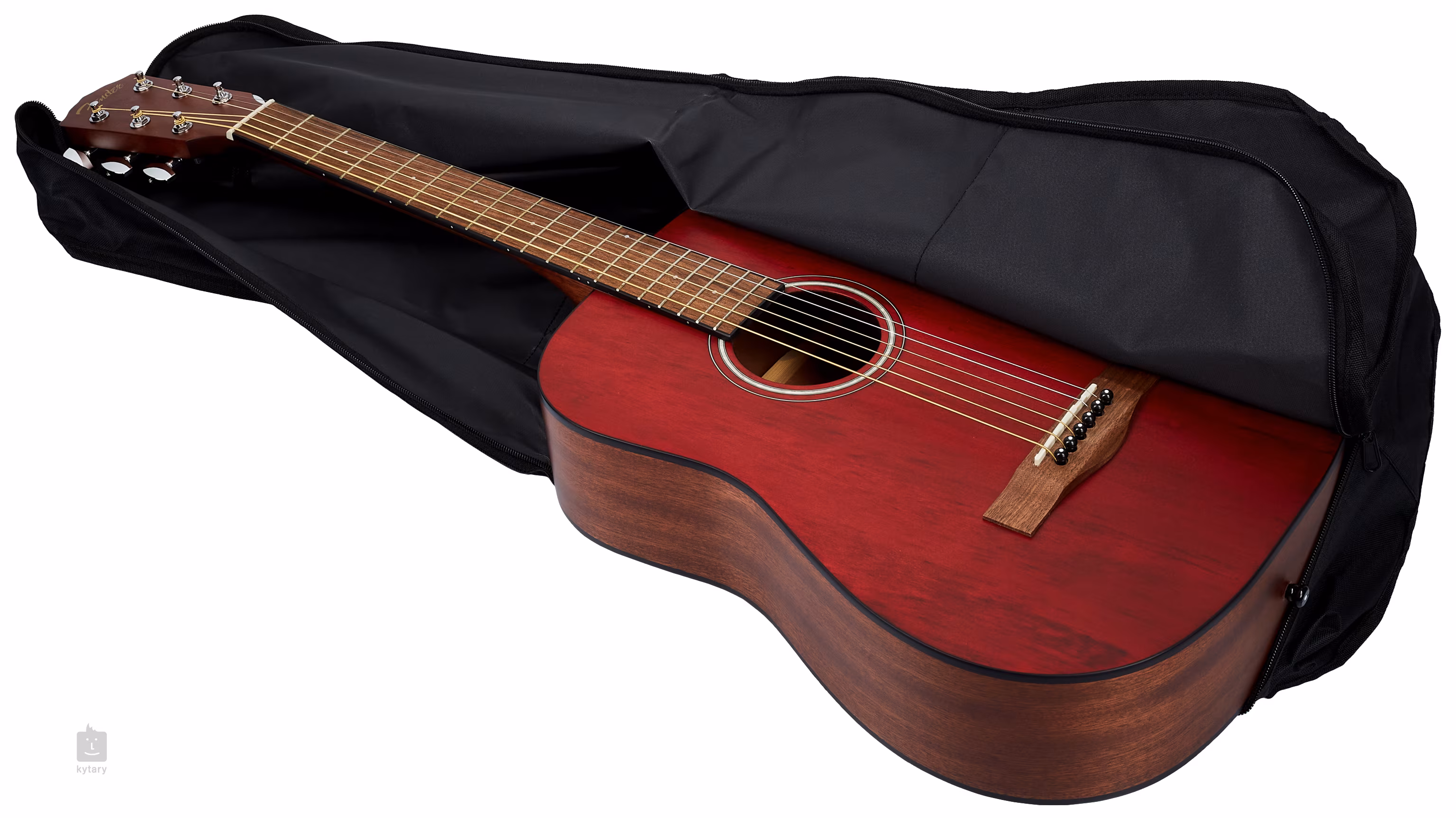 Struny są zamocowane w firmowym chromowanym chassis Die-Cast i orzechowej podstrunnicy poprzez plastikową podstrunnicę i kompensowane siodełko. Do gitary dołączony jest gig bag.