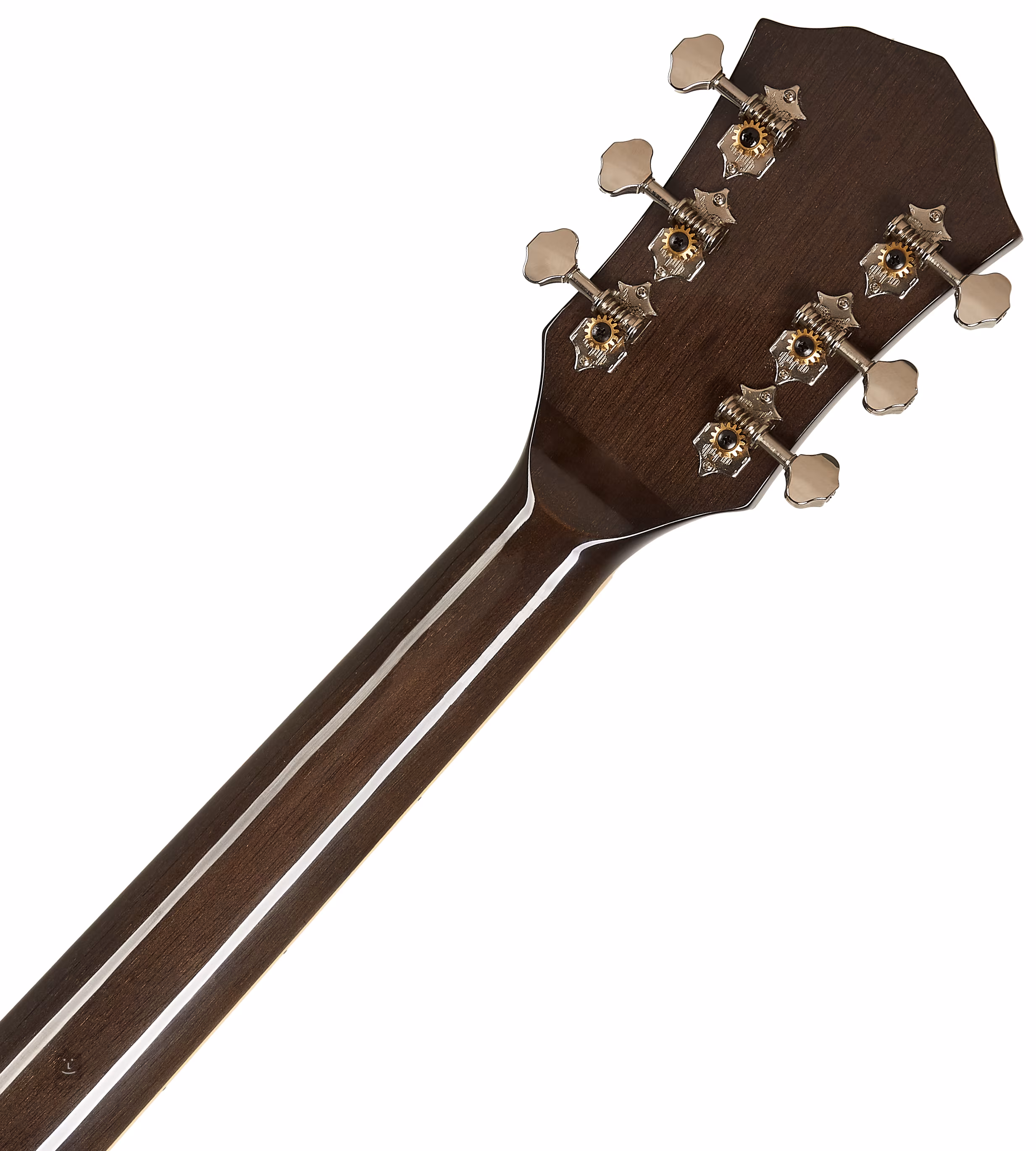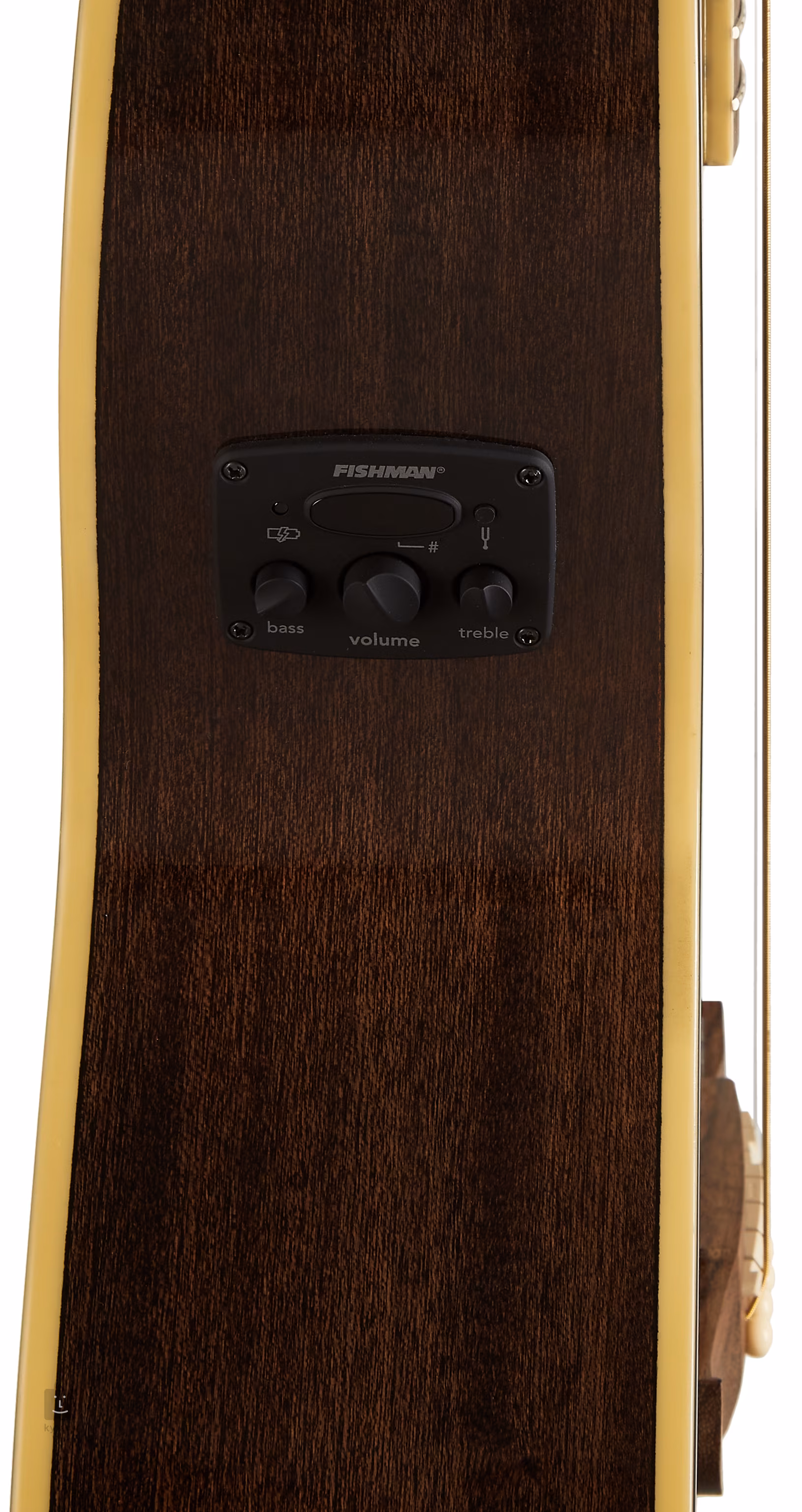 Wbudowany w tył gitary przedwzmacniacz Fishman z regulacją głośności, dwupasmowym EQ i zintegrowanym tunerem oferuje szybki i łatwy system nagłośnienia do występów publicznych lub prób z zespołem.