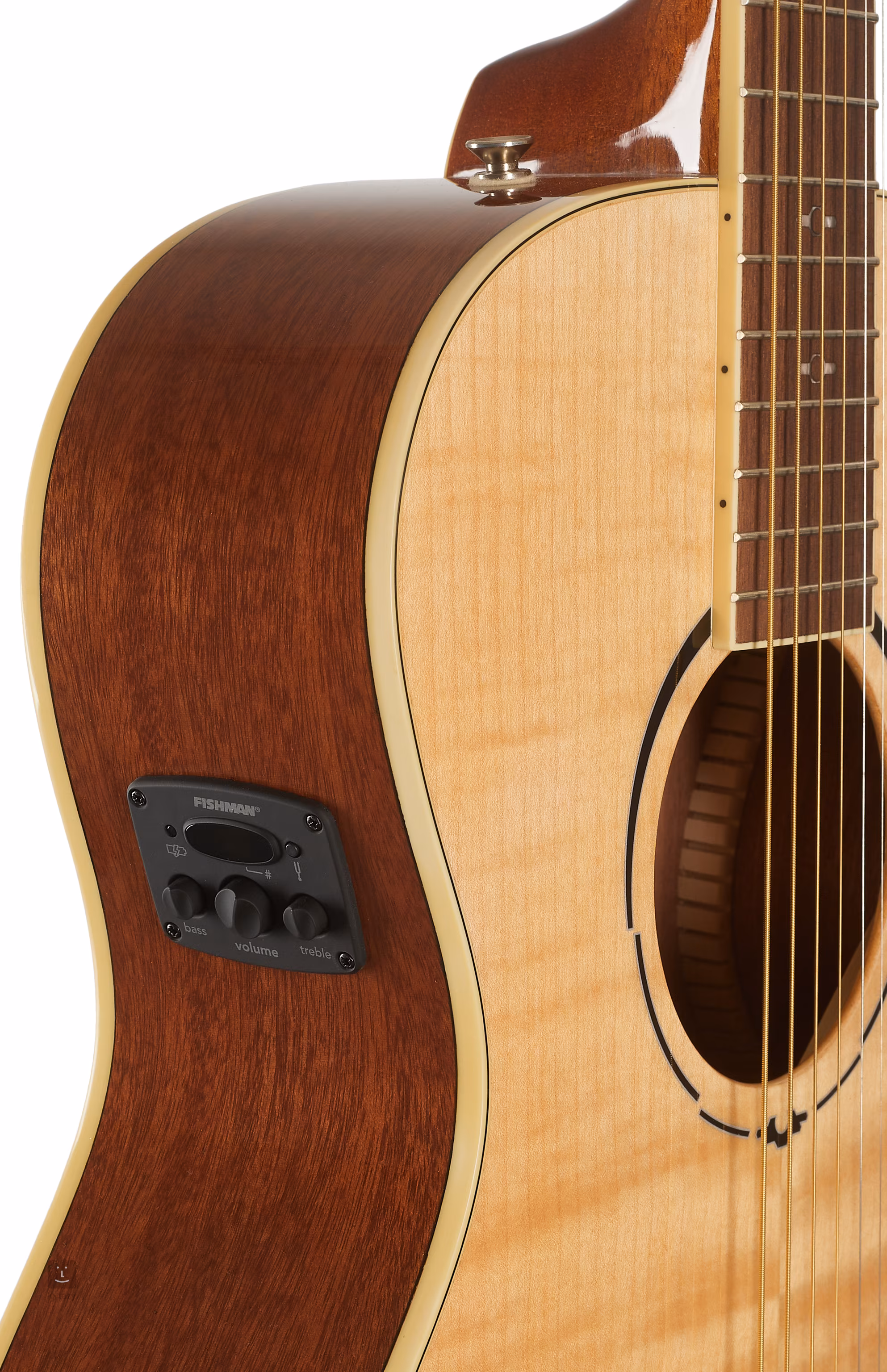 Wbudowany w tył gitary przedwzmacniacz Fishman z regulacją głośności, dwupasmowym EQ i zintegrowanym tunerem oferuje szybki i łatwy system nagłośnienia do występów publicznych lub prób z zespołem.