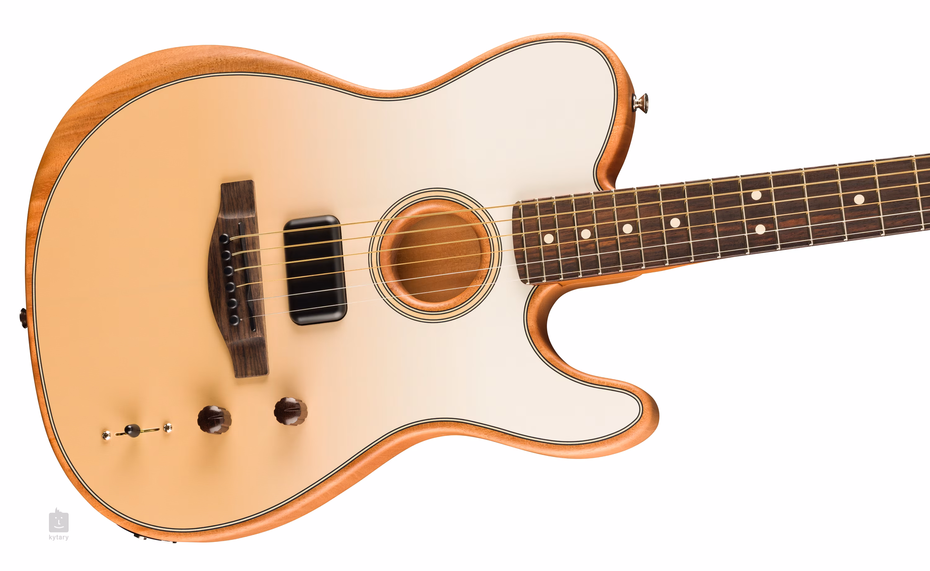Dźwięk jest przechwytywany przez dwa przetworniki. Magnetyczny humbucker Shawbucker zapewnia autentyczne brzmienie gitar elektrycznych Fender, bez typowego szumu pojedynczych cewek. Świat gitar elektroakustycznych jest reprezentowany przez przetwornik piezoelektryczny Fishman z cewką podrzędną. W sumie możesz wybierać spośród sześciu wybranych przez artystę brzmień/głosów - od czystych gitar elektrycznych po brzmienia gitar akustycznych (zarówno dużych Dreadnought, jak i mniejszych gitar). W pozycjach 1 i 3 dźwięk jest wzbogacony o wbudowany efekt chorus.
